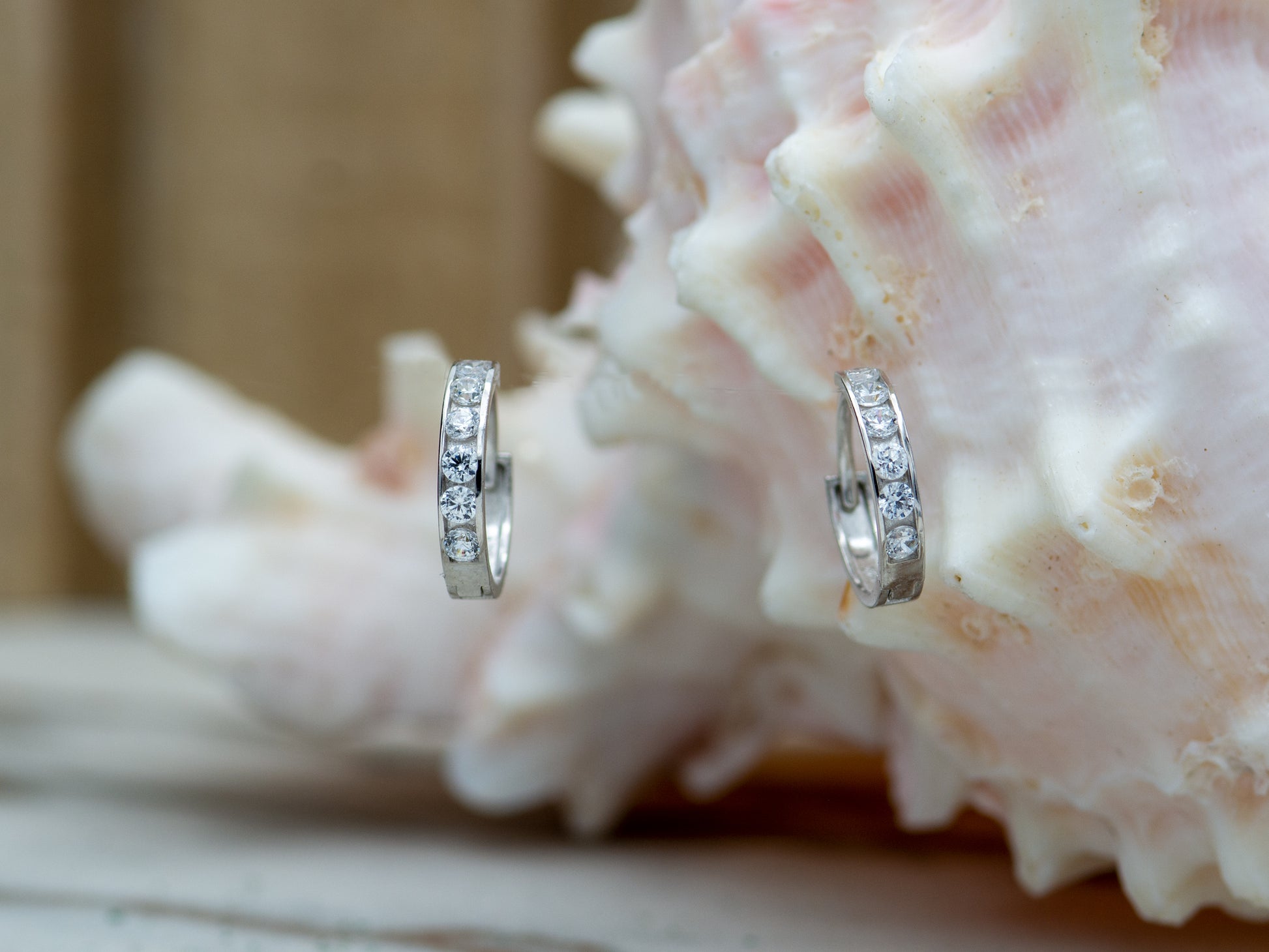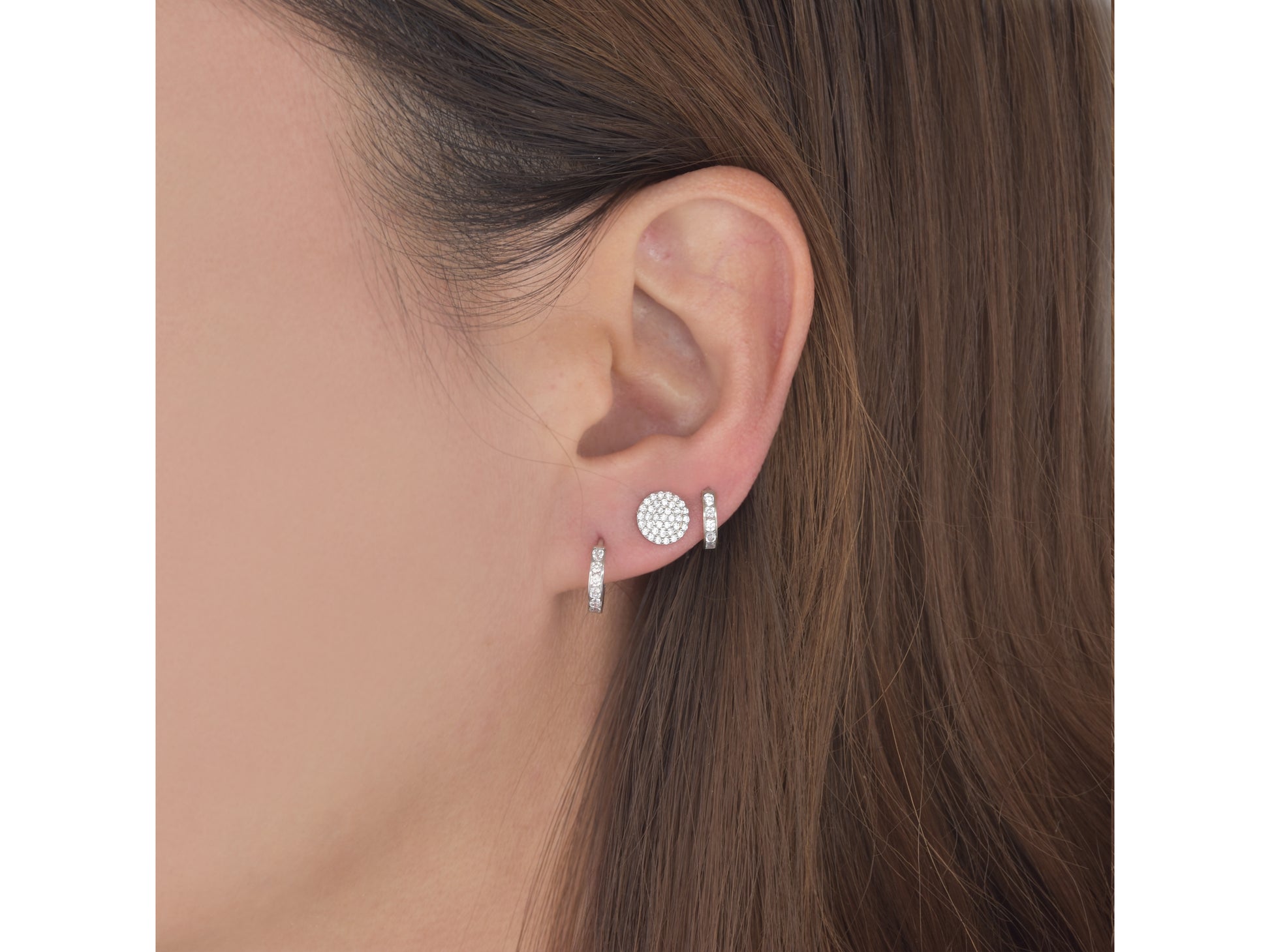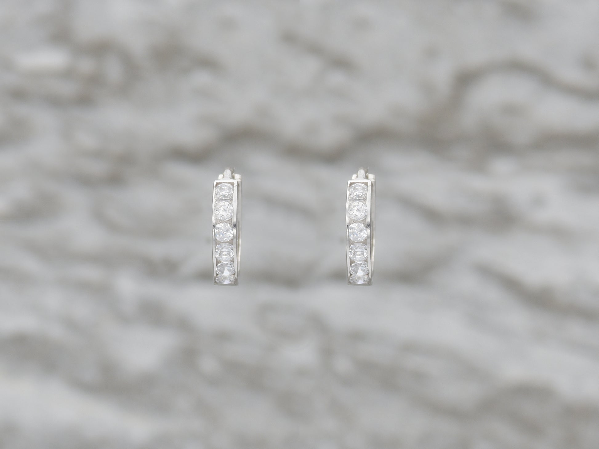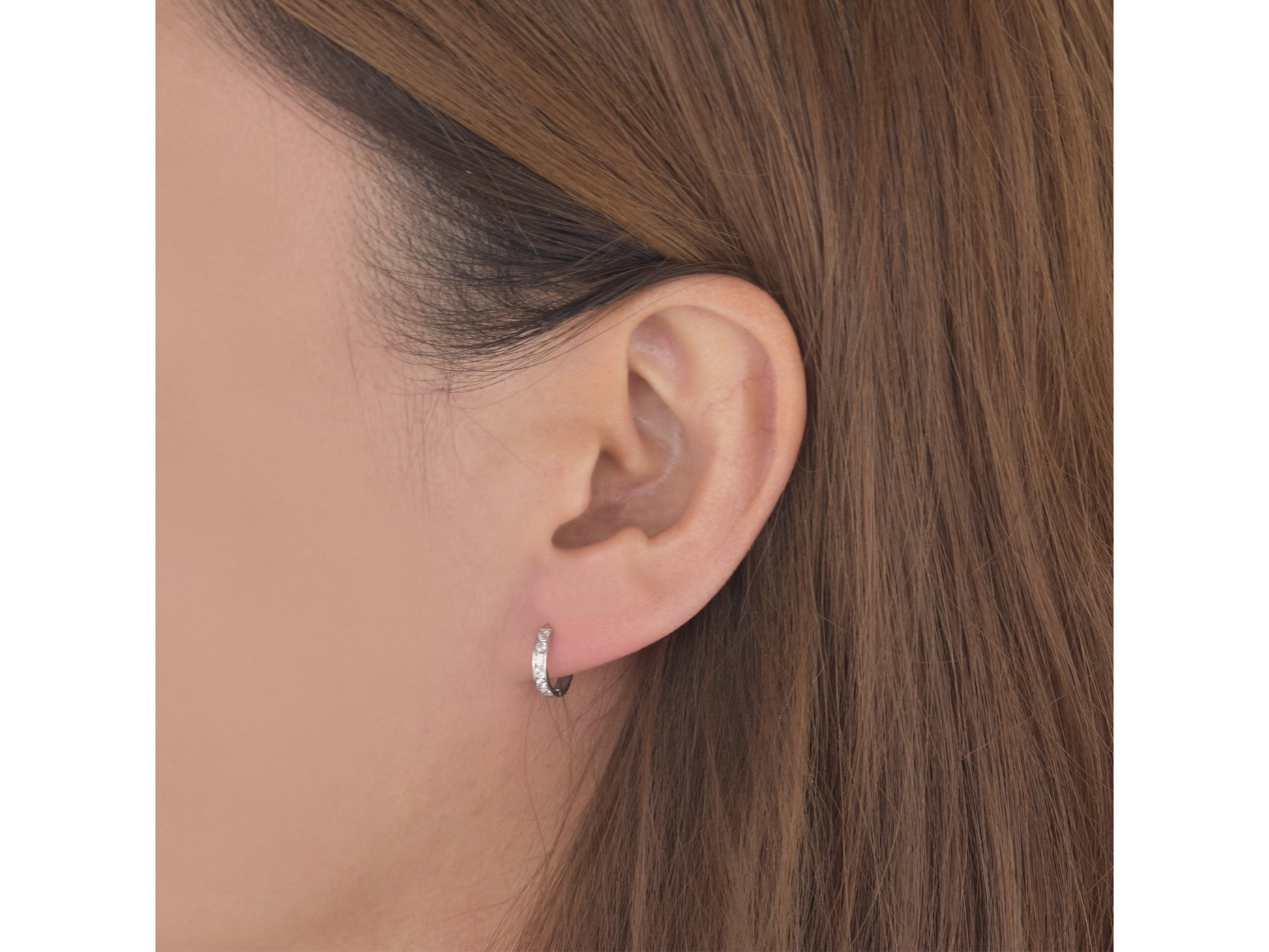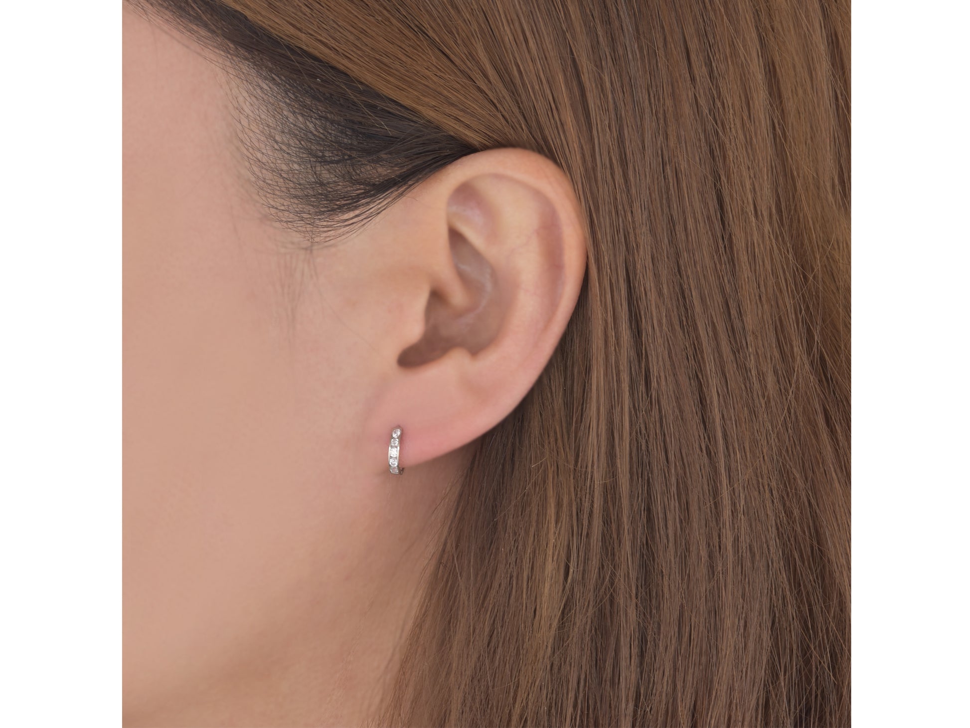 Simple, edge and brilliant Huggie mini hoop earring is single channeled setting will give a crisp and clean look that we all been looking for, dress it up for special event or just dress it down with T- shirt and a jean, will work both ways.