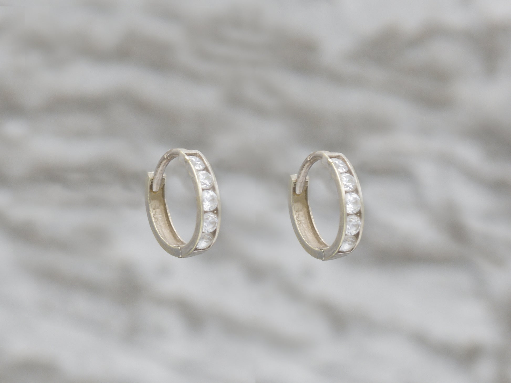 14k solid White gold single line simulated diamond earring, 14k Solid Gold Small Huggie Hoop 14K Solid Gold Hoop Earrings sold as PAIR 6mm