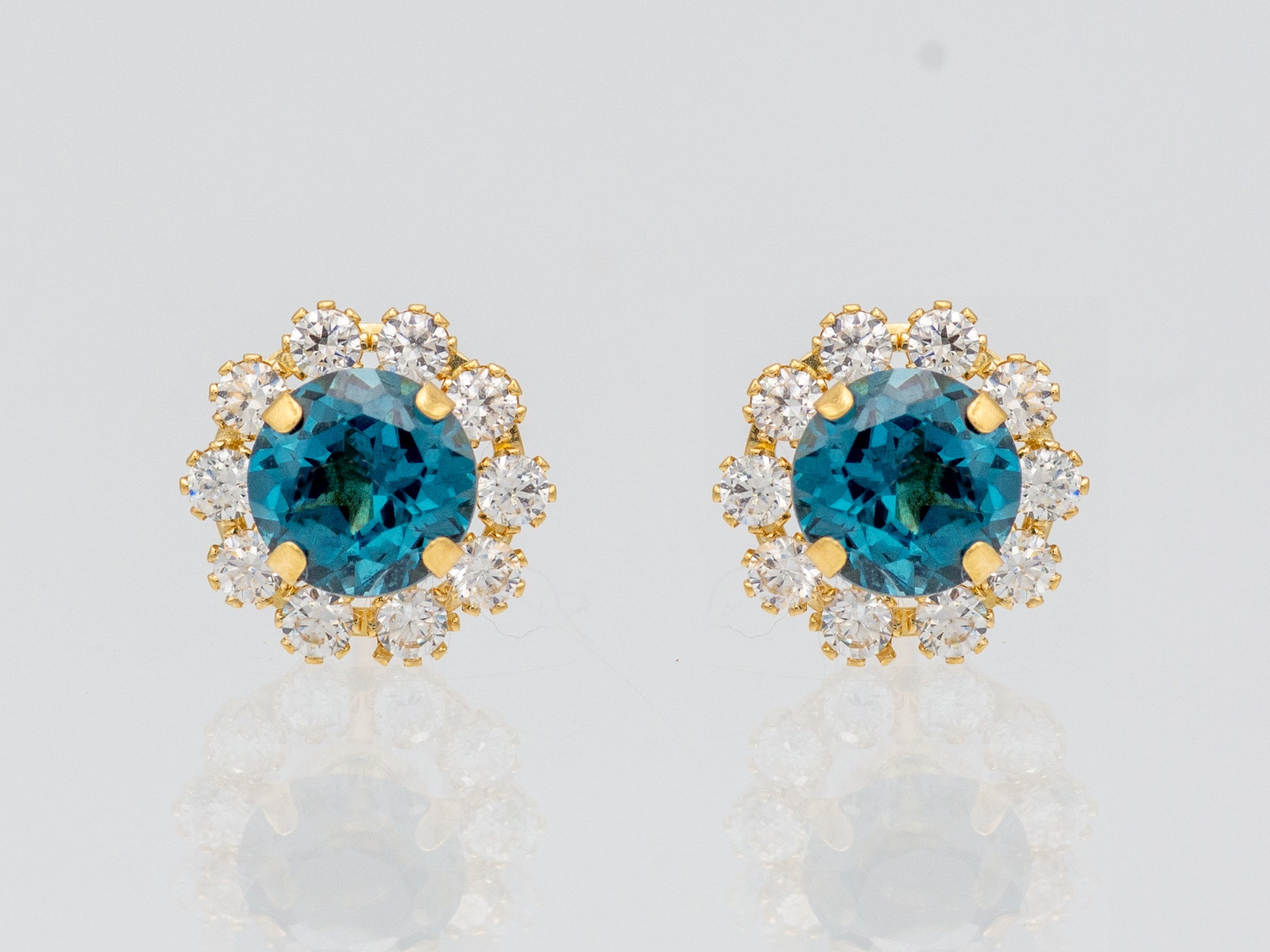 Discover the perfect blend of elegance and simplicity with these Blue Topaz and simulated Diamond Halo Stud Earrings. Crafted to provide a gentle yet captivating sparkle, they offer a timeless design with modern aesthetics—a tribute to classic beauty. Ideal for both everyday elegance and special occasions, these studs add a refined touch of luxury to any jewelry collection.