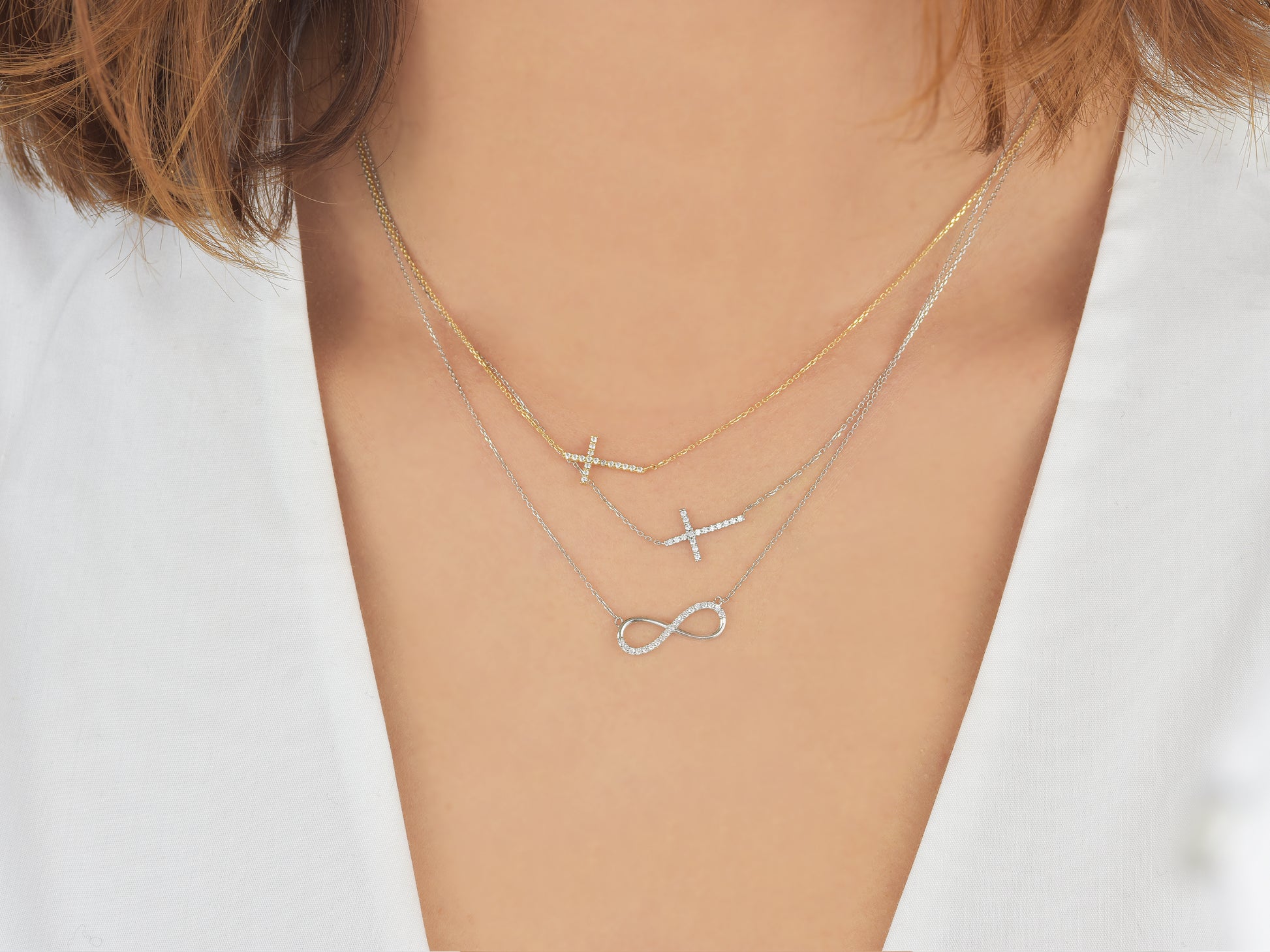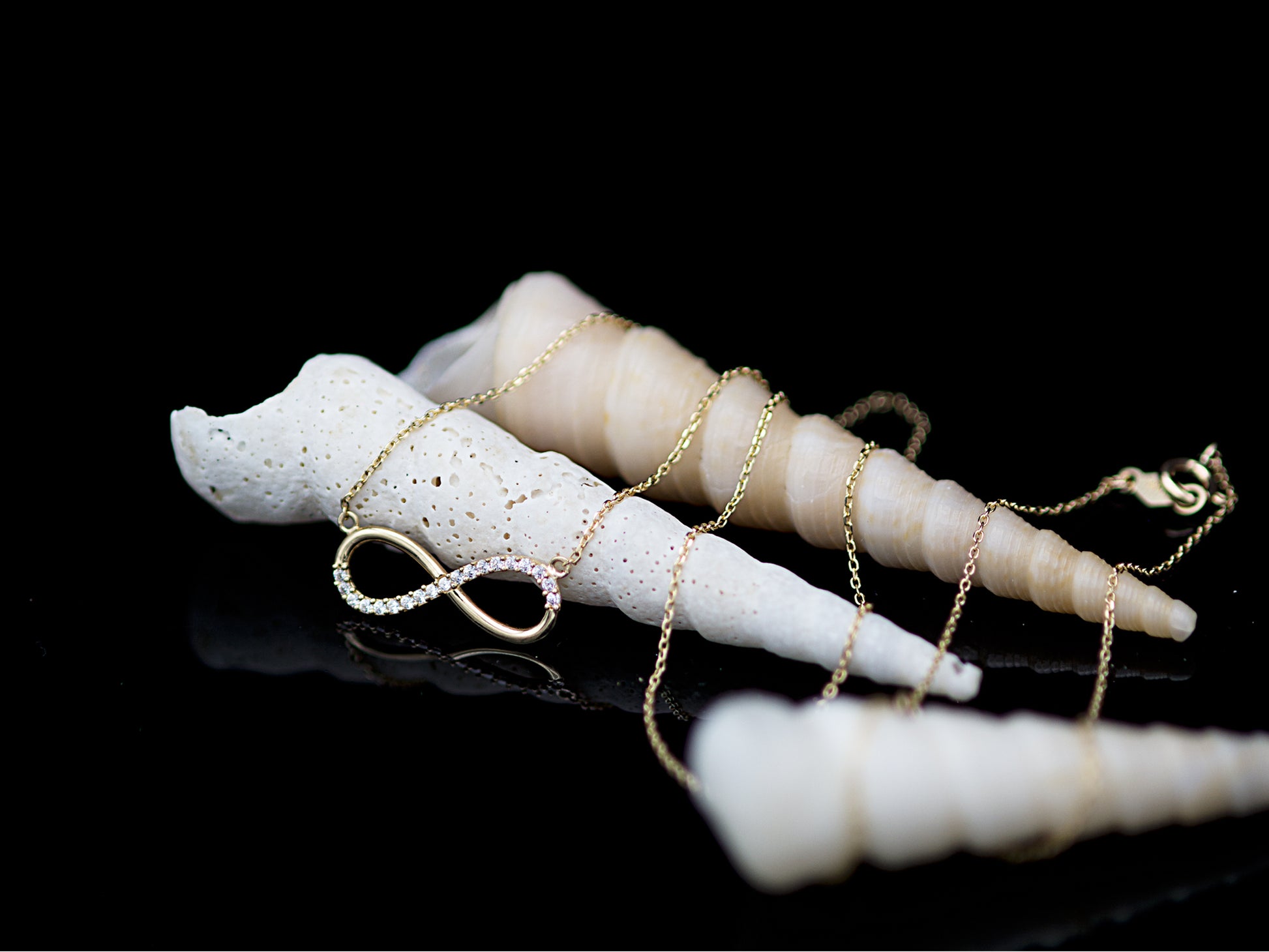 14K solid WHITE, Yellow Gold Infinity Necklace