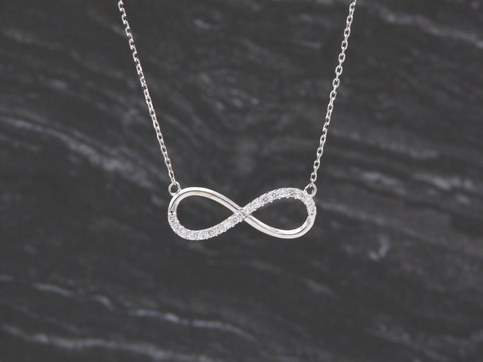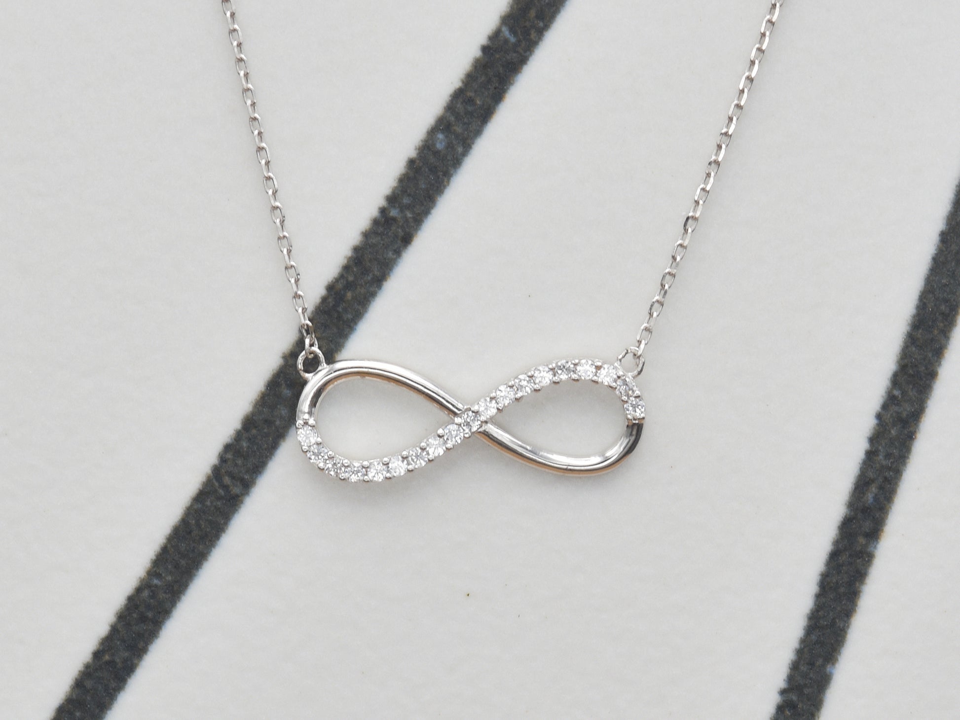 Frame her natural beauty with this sweet white gold infinity pendant necklace.