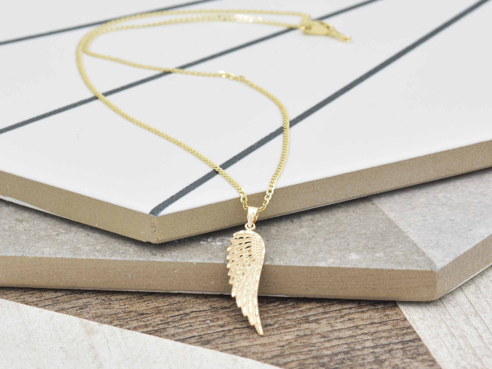 4k solid yellow gold Angel Wing Necklace / Long Feathery Wing on • Meaningful Jewelry for Women, every women's desire to have.