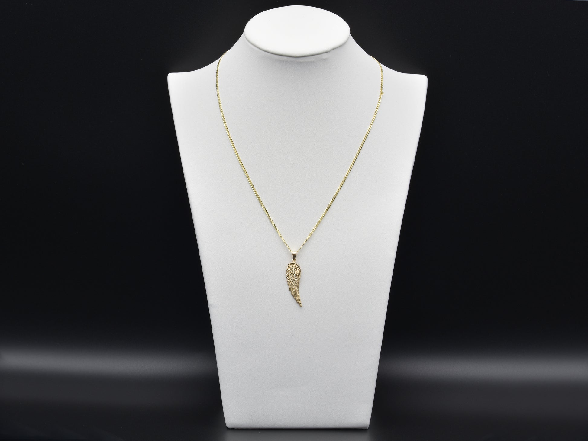 Each piece features a 3D angel wing constructed of 14K solid yellow gold (not plated or filled) with all the details ,14k gold solid gold hollow chains are available in 16, 18,20 inches upon request.