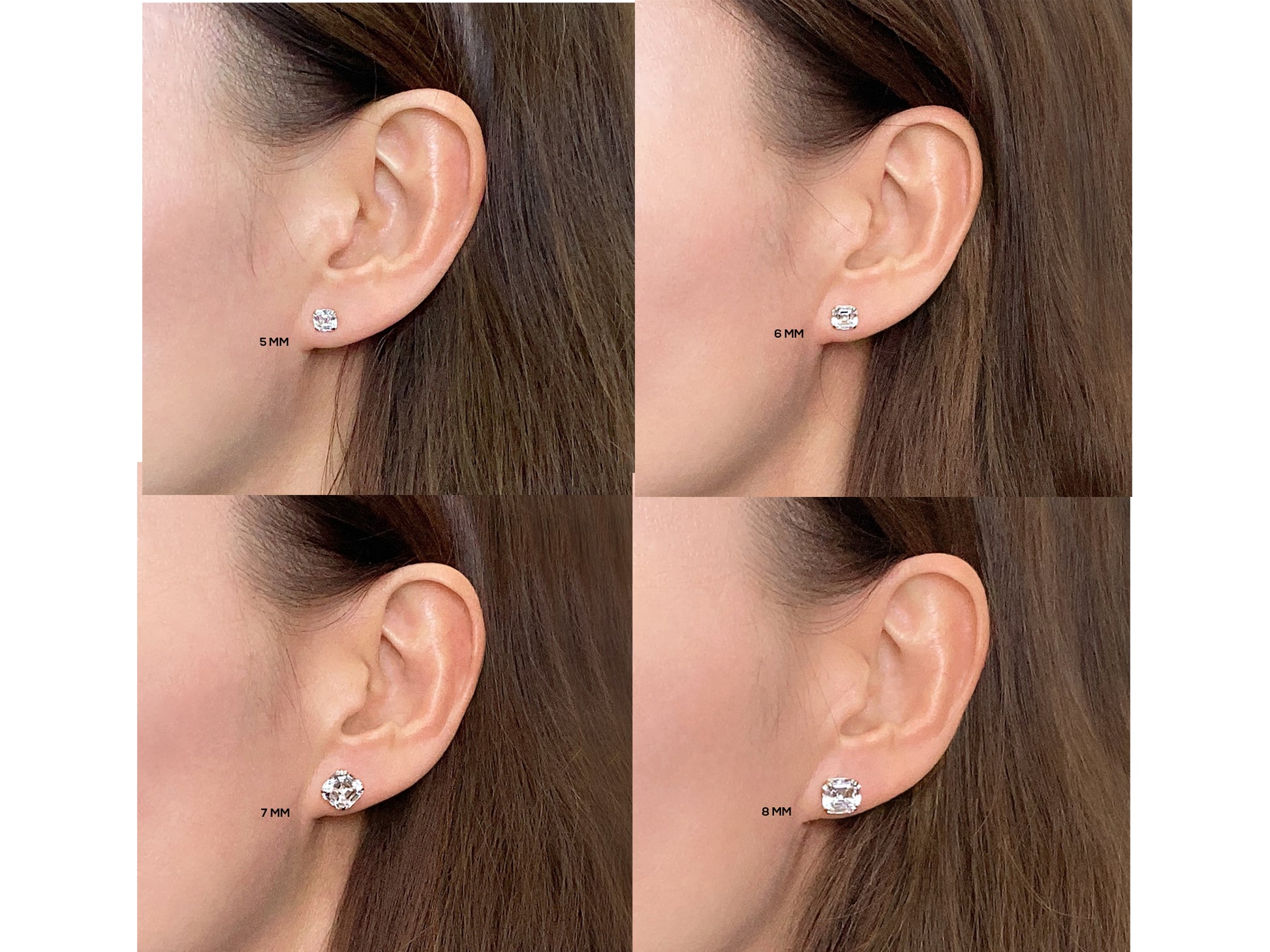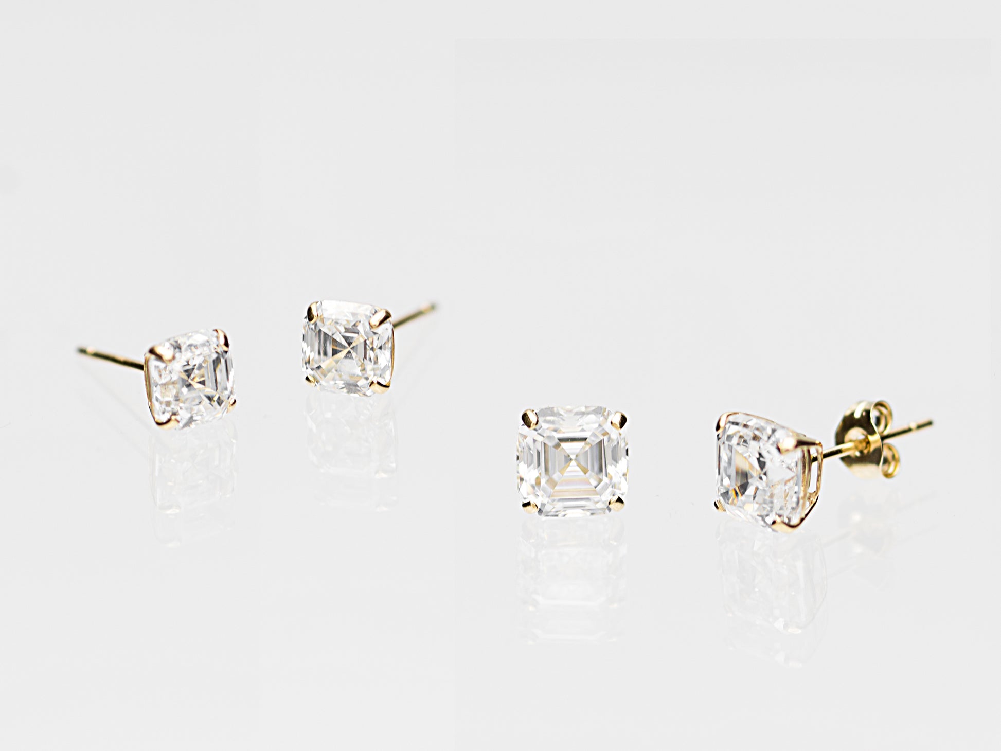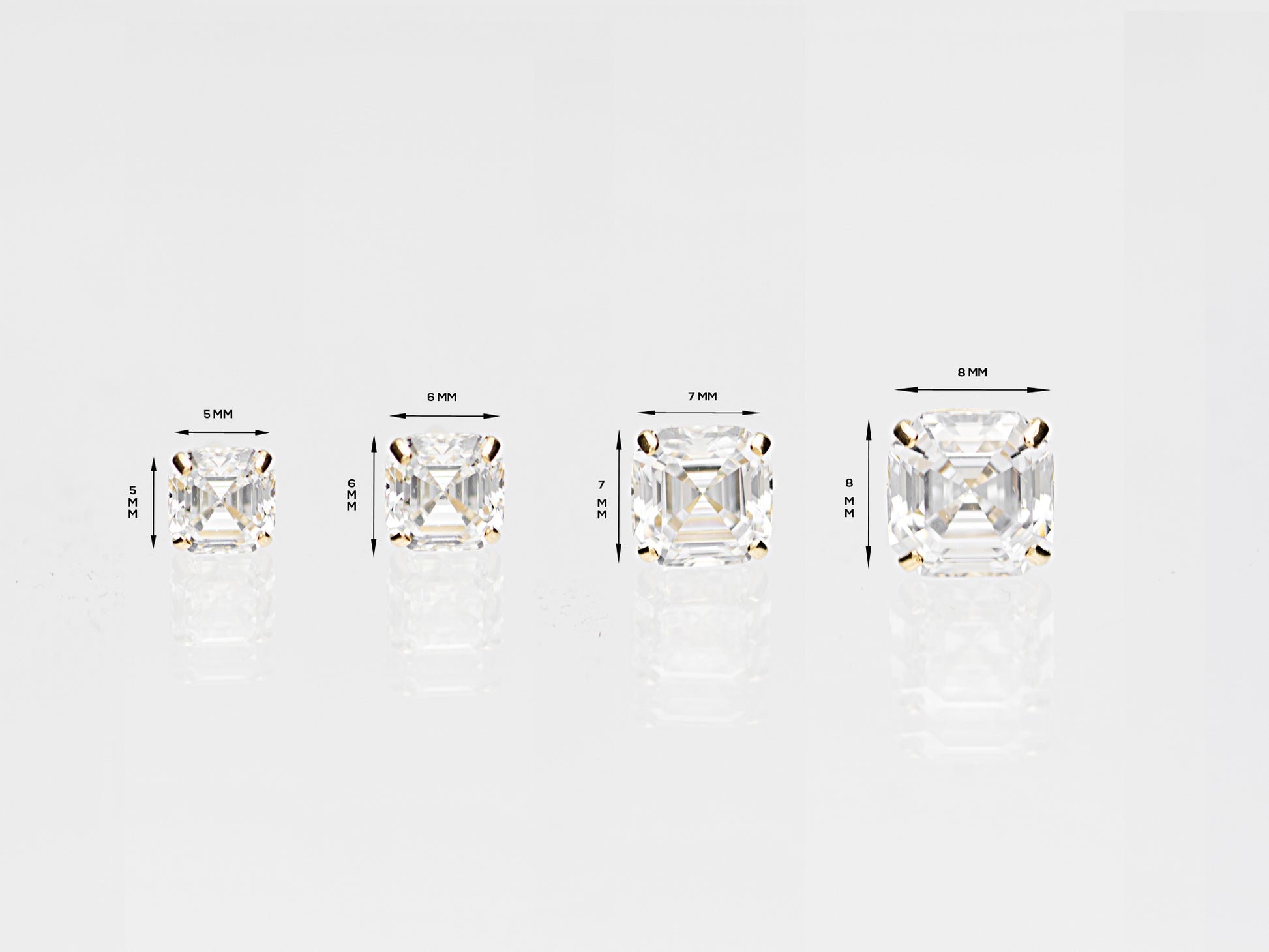 14k Solid Yellow Gold Basket Set Asscher Cut CZ Stud