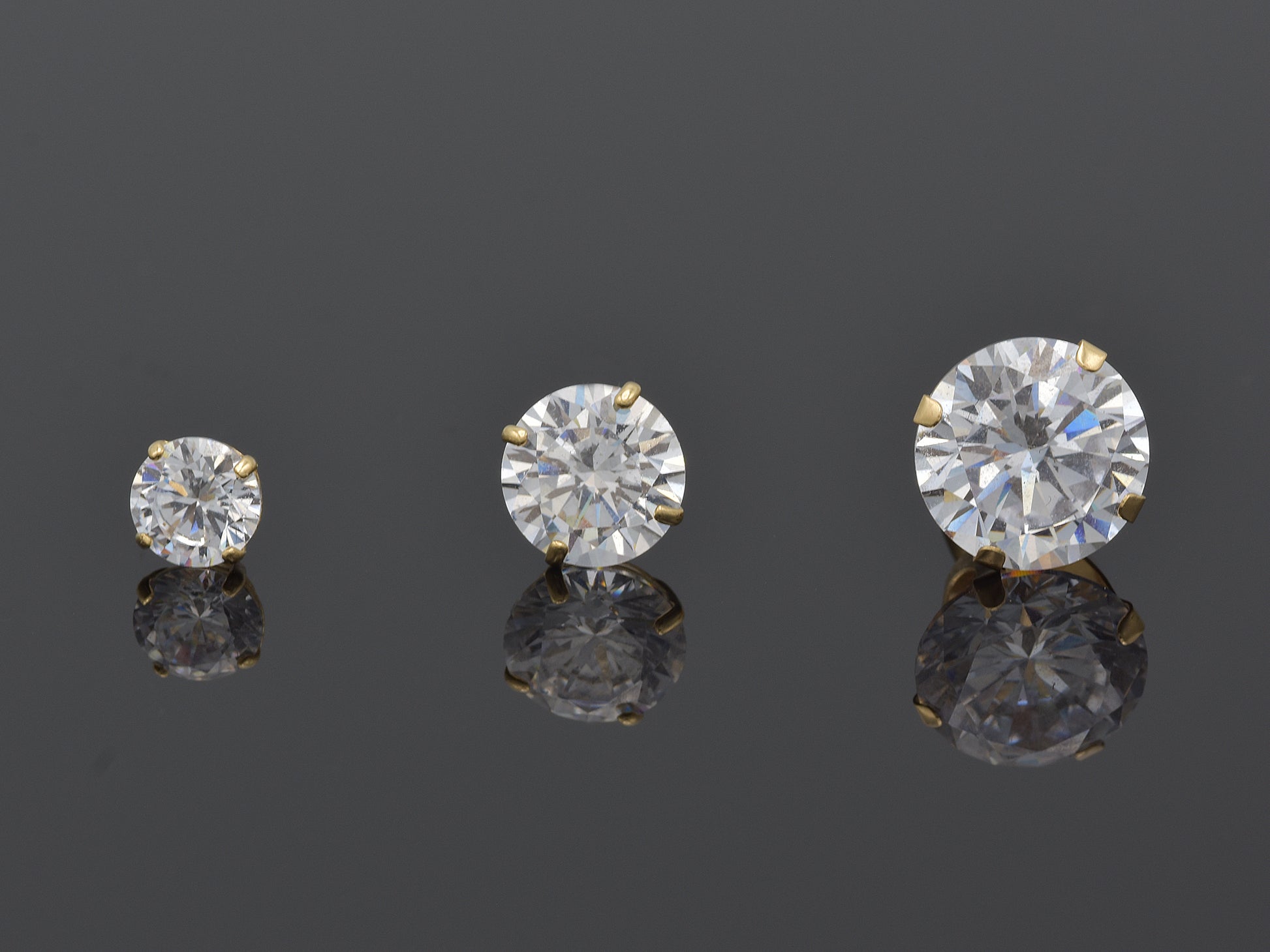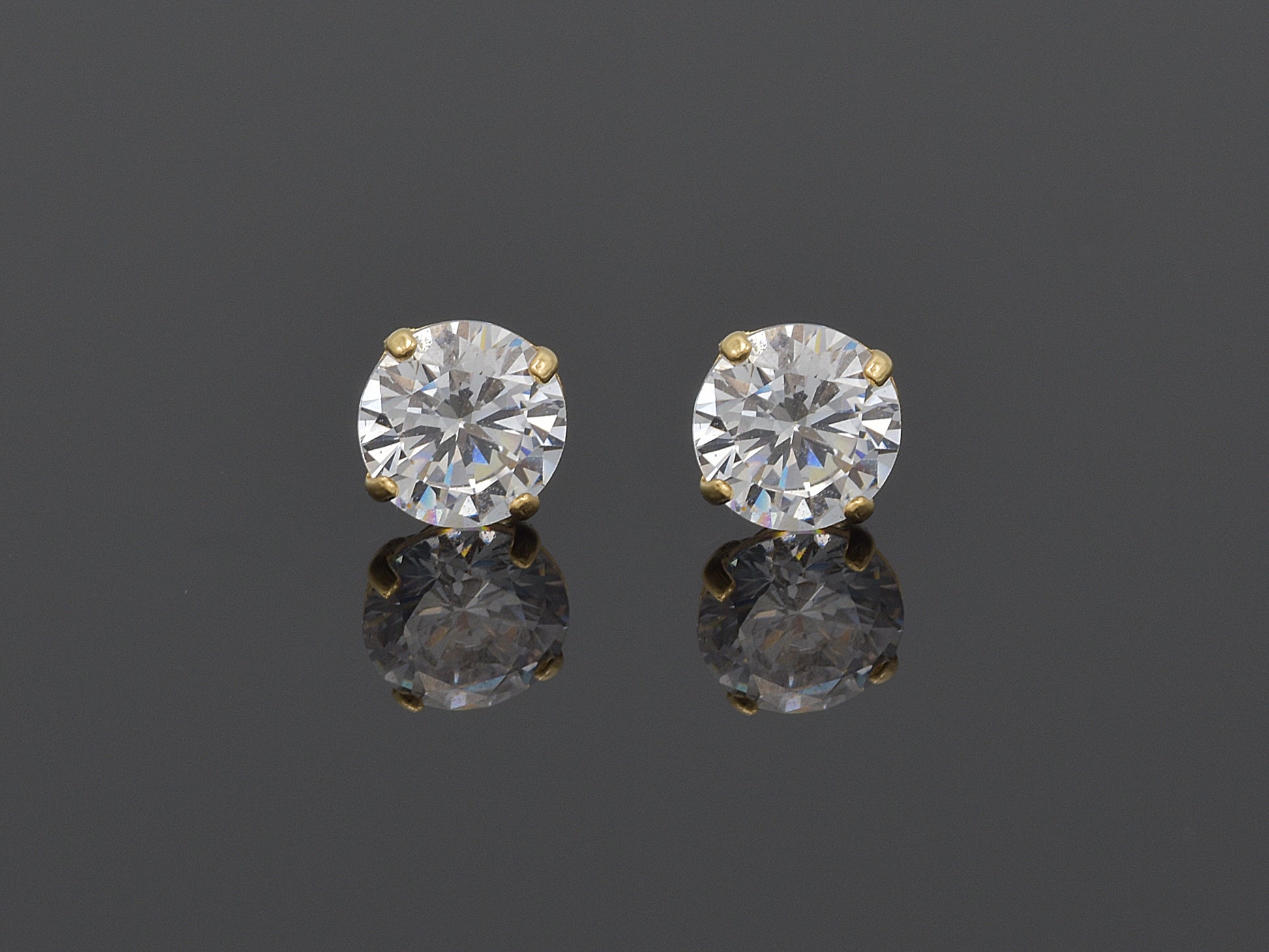 14K solid yellow gold setting with Solitaire cut CZ post stud earring.