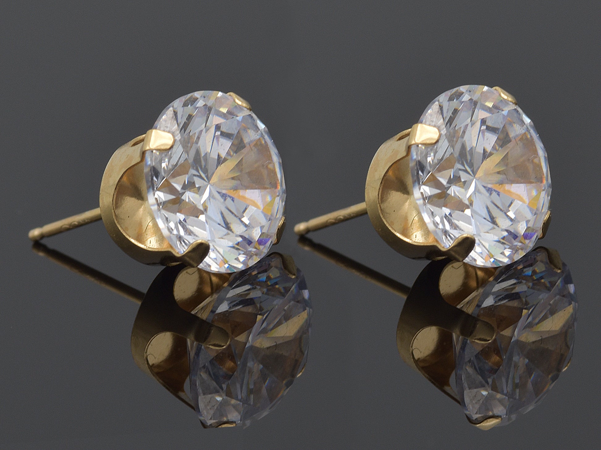 14k Solid Yellow Gold Basket Set Round CZ Stud