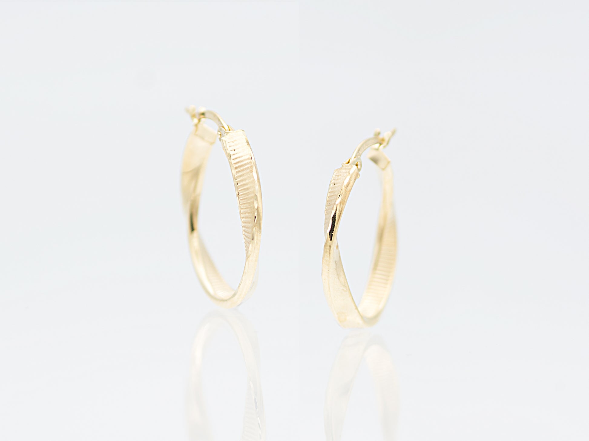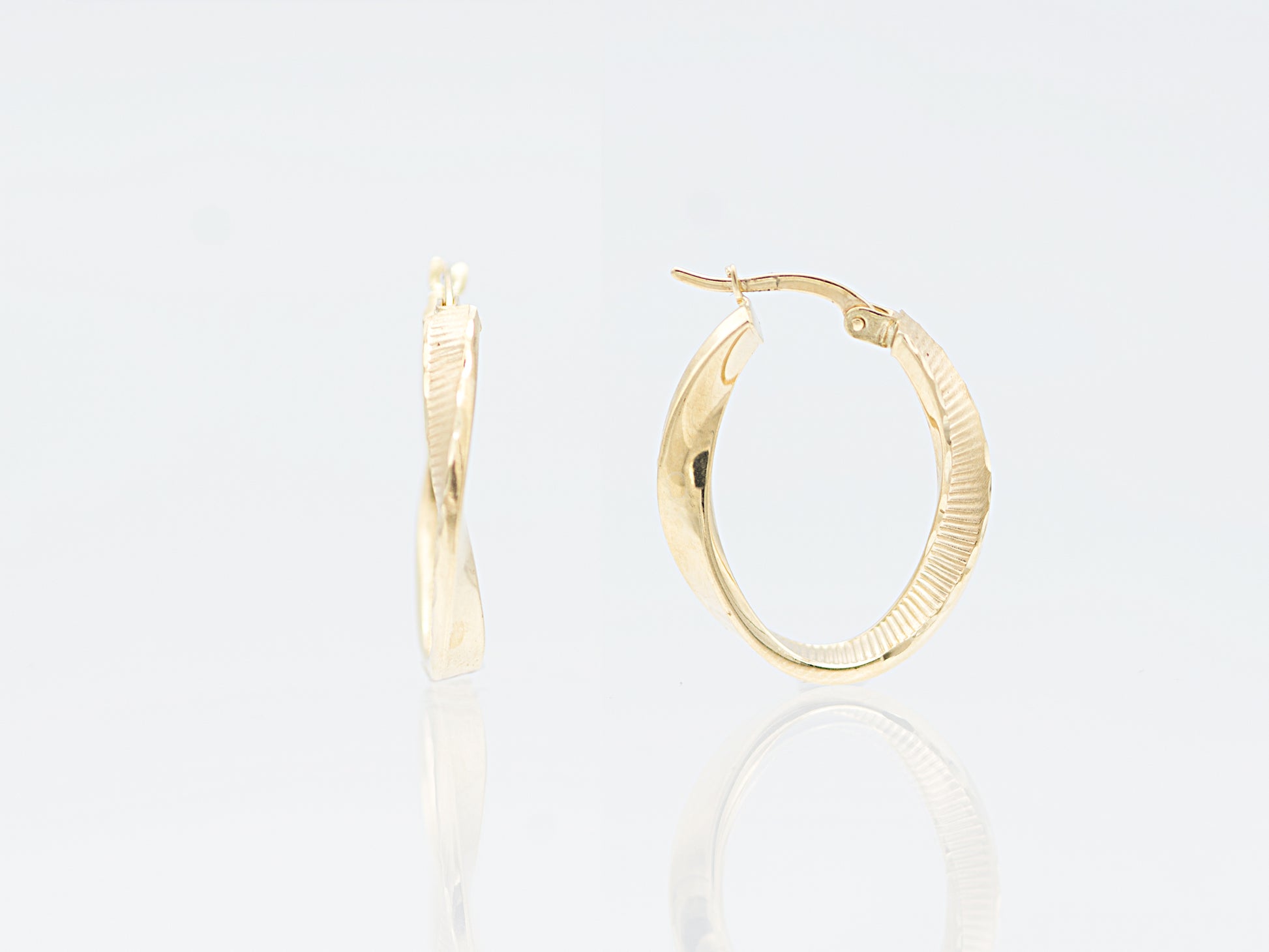 Flat Tubing Oval Twisted 14K genuine Solid Yellow Gold Earrings.