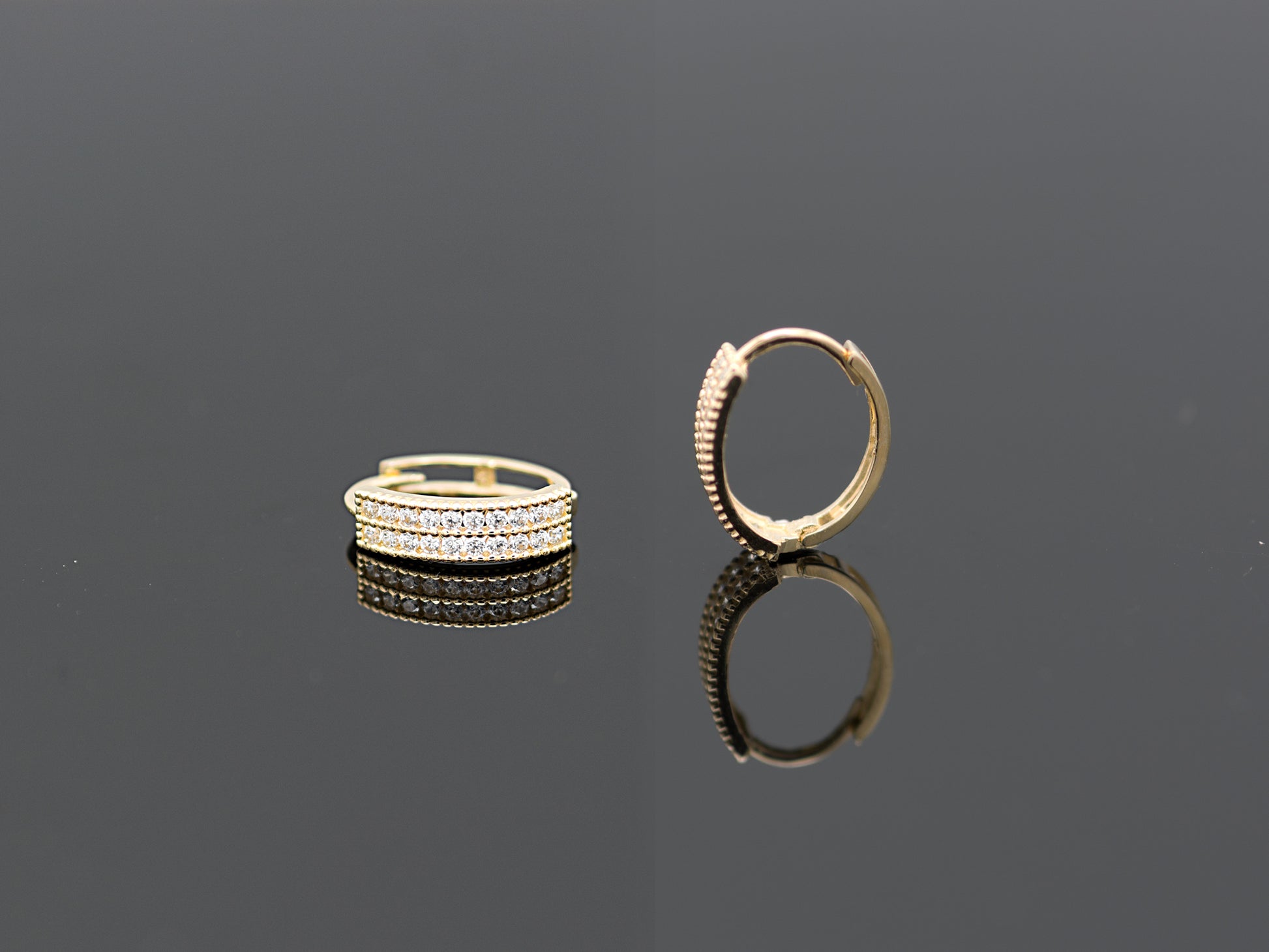 14k solid yellow gold simulated Diamond earring, Oval shape Huggie Hoop, Double paved cubic zirconia sold as PAIR