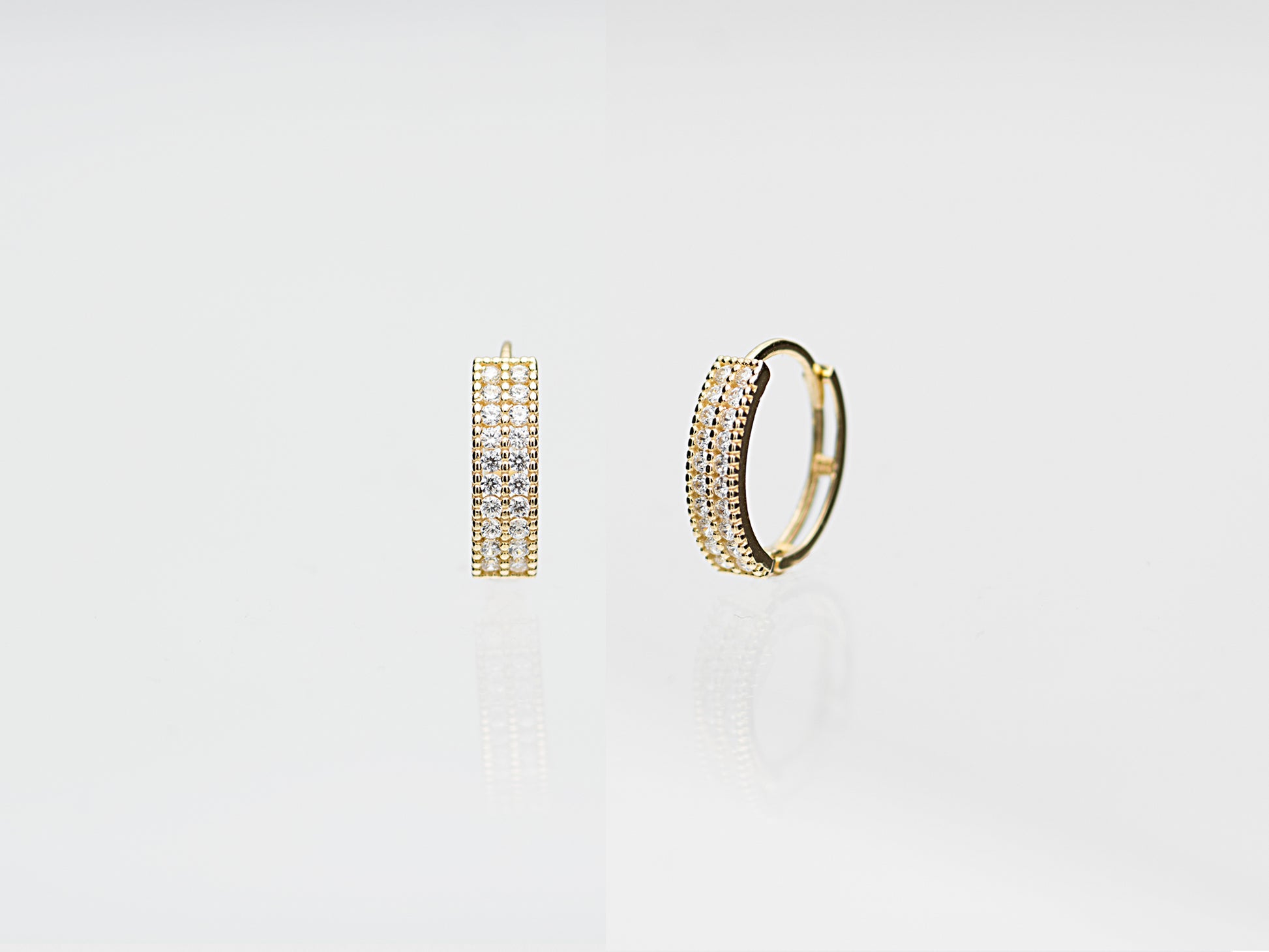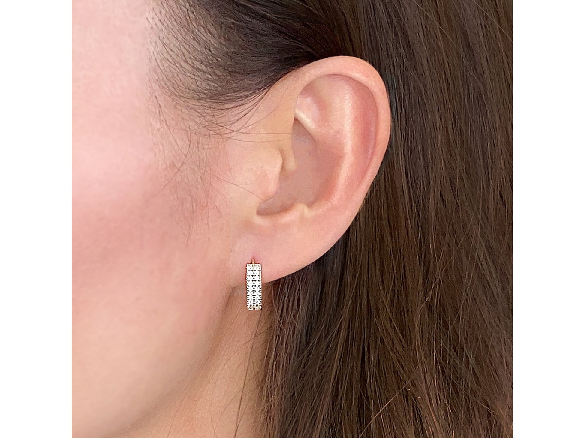 Simple, edge and brilliant Huggie hoop earring is double lined prong setting will give a enhanced and clean look that we all been looking for, dress it up for special event or just dress it down with T- shirt and a jean, will work both ways.