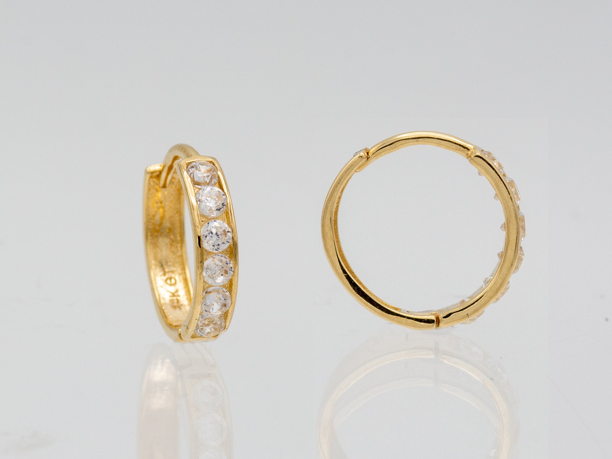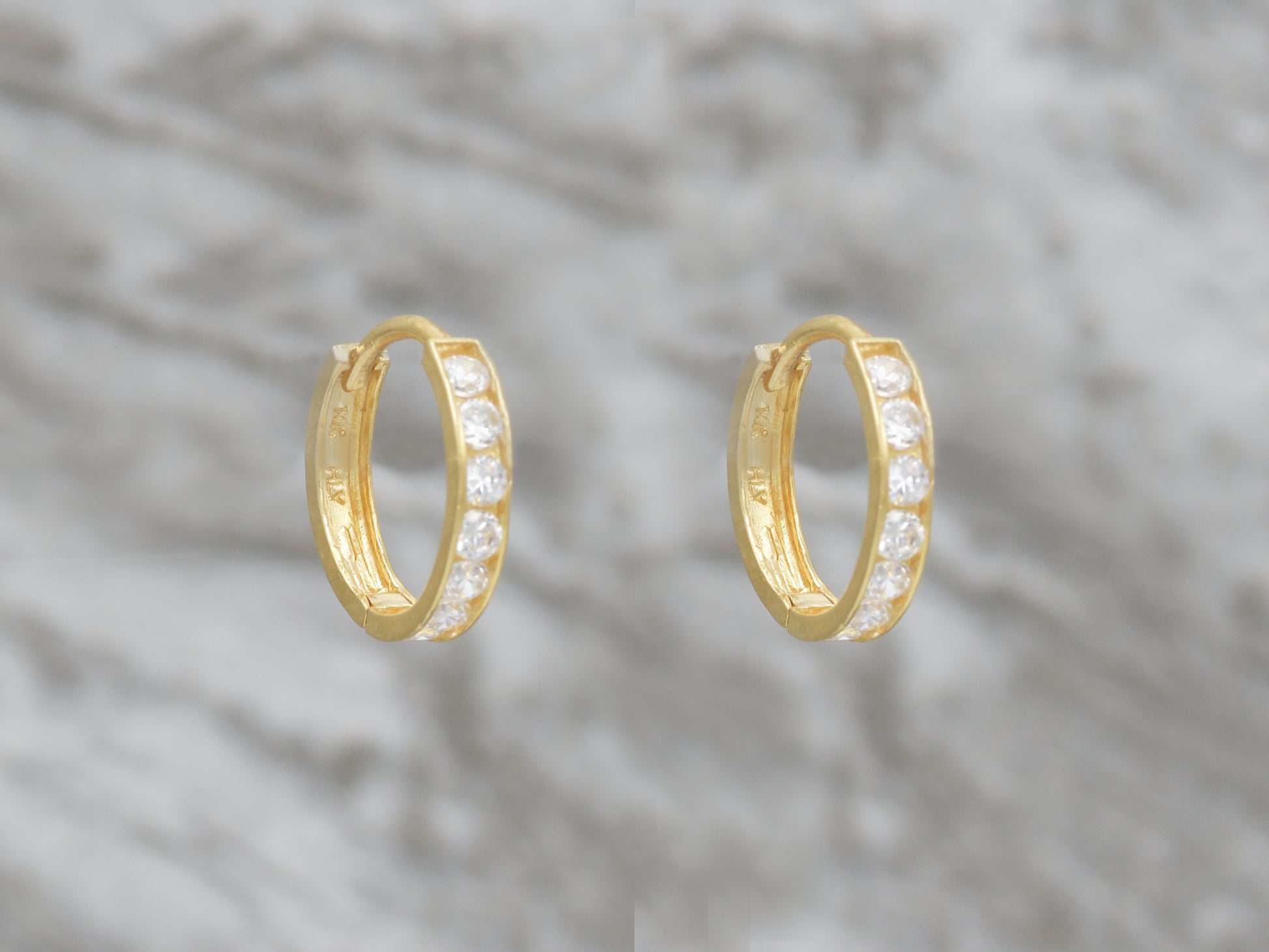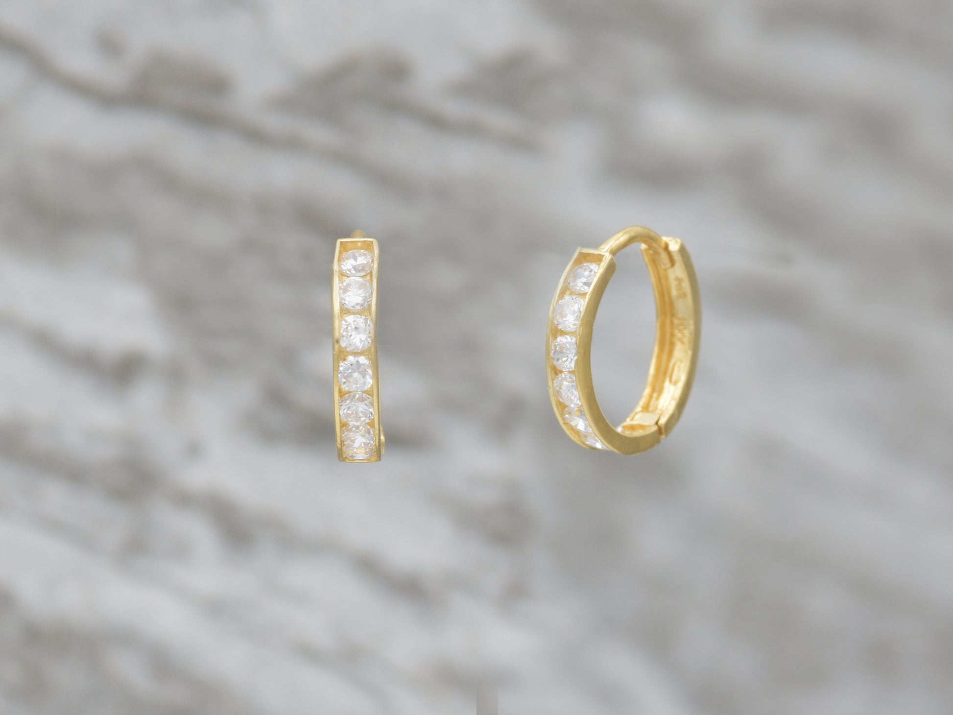 14k solid yellow gold single line simulated diamond earring, 14k Solid Gold Small Huggie Hoop 14K Solid Gold Hoop Earrings sold as PAIR