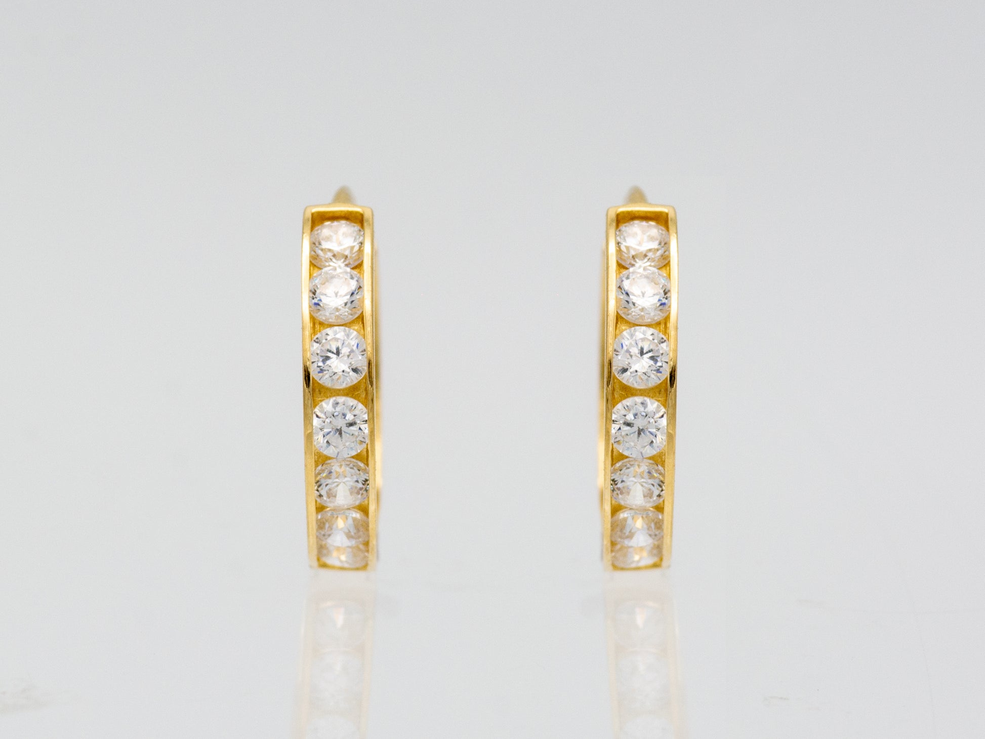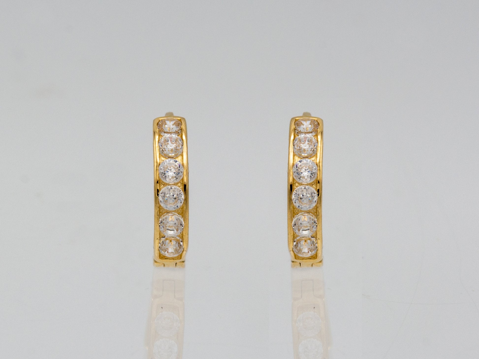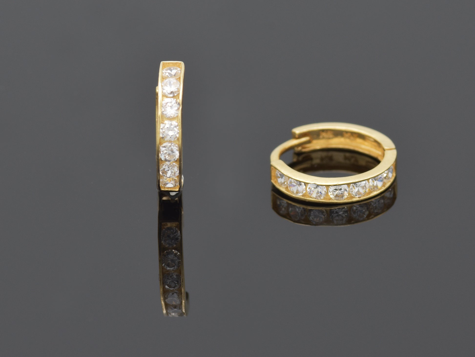 14k solid yellow gold single line simulated diamond earring, 14k Solid Gold Small Huggie Hoop 14K Solid Gold Hoop Earrings sold as PAIR