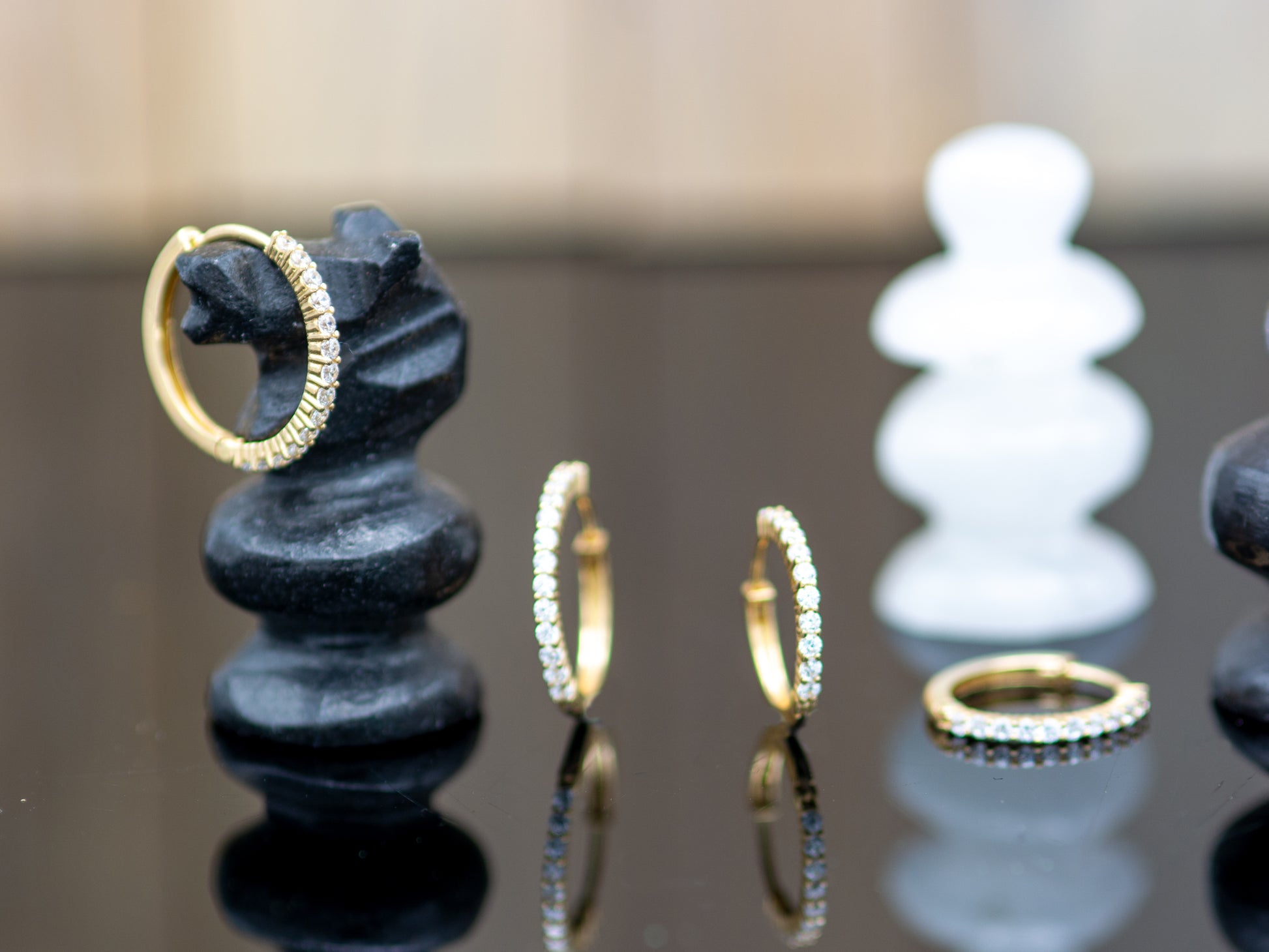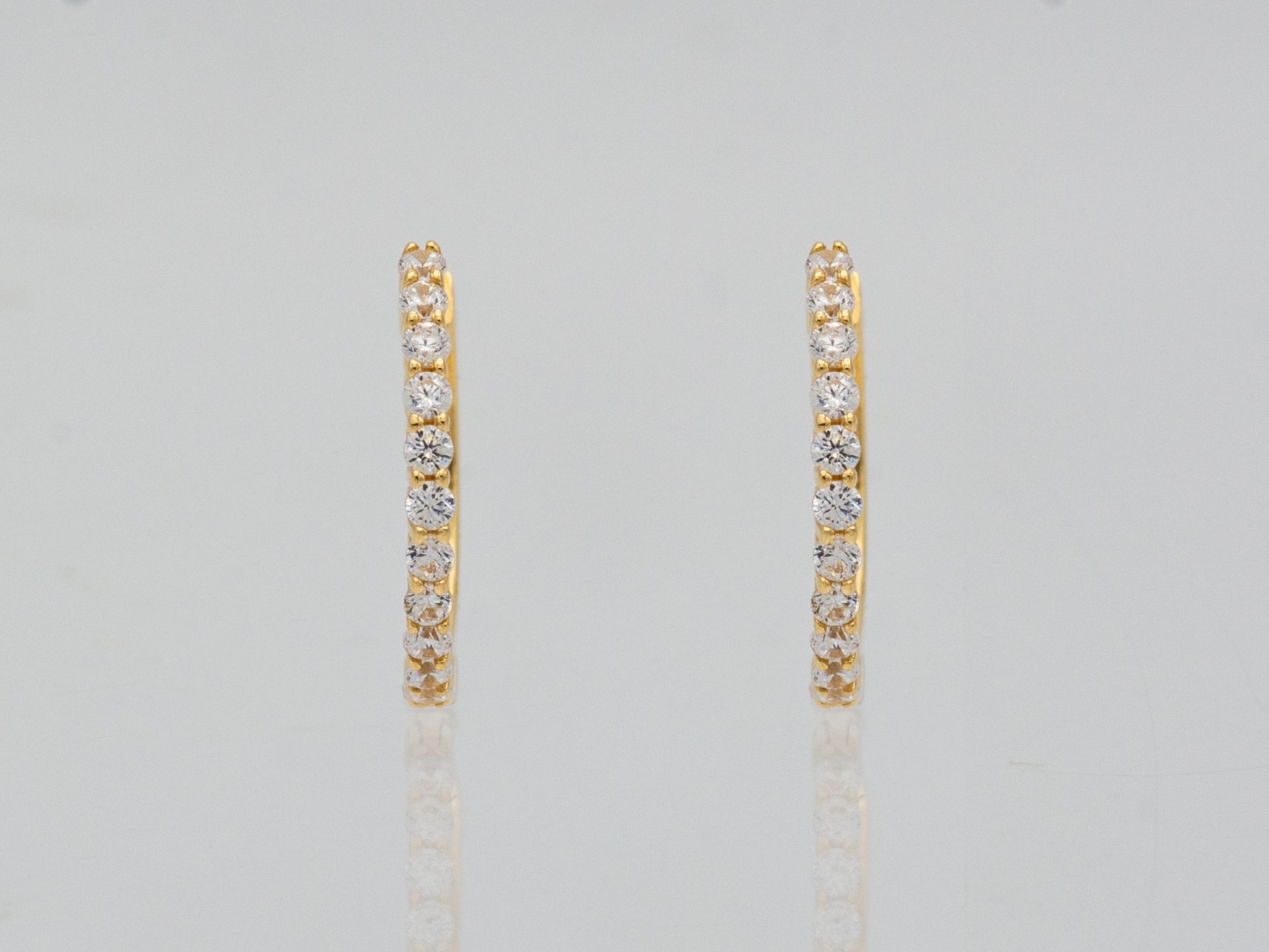 Elevate your everyday with these dainty simulated diamond huggie hoops in 14K solid gold—timeless, versatile, and effortlessly chic. Whether you're heading to work or out for the evening, these sparkling essentials add just the right touch of luxury. The perfect gift—for yourself or someone special.