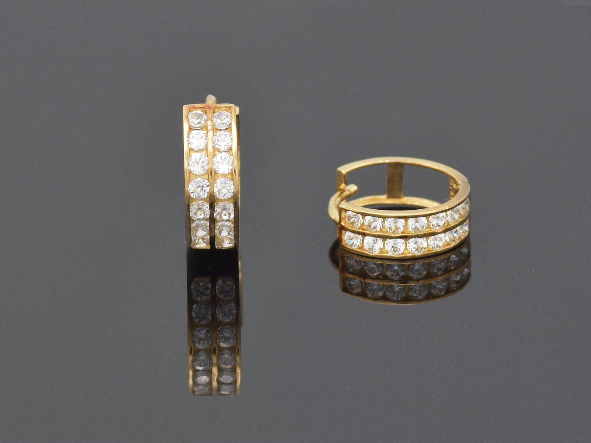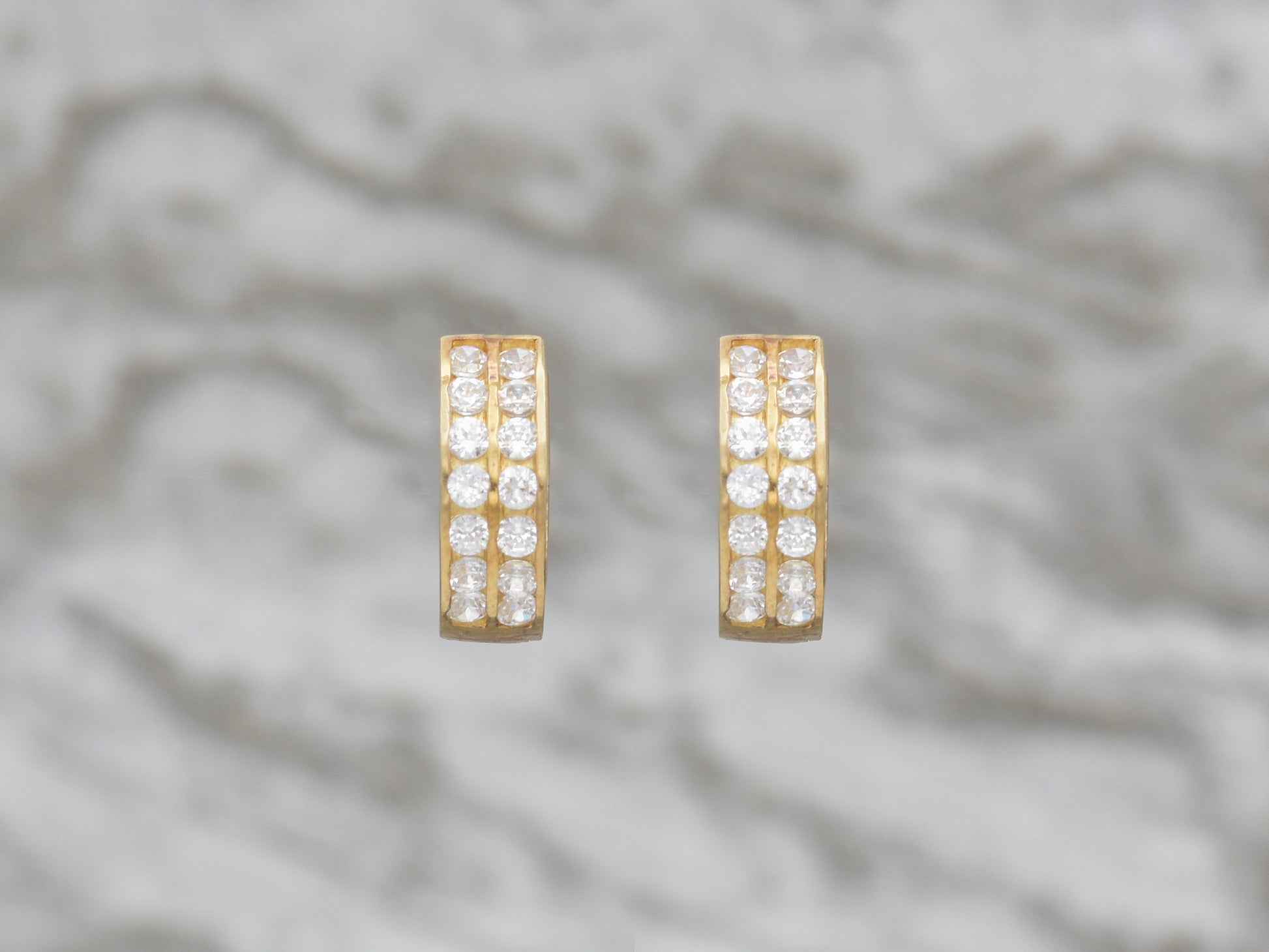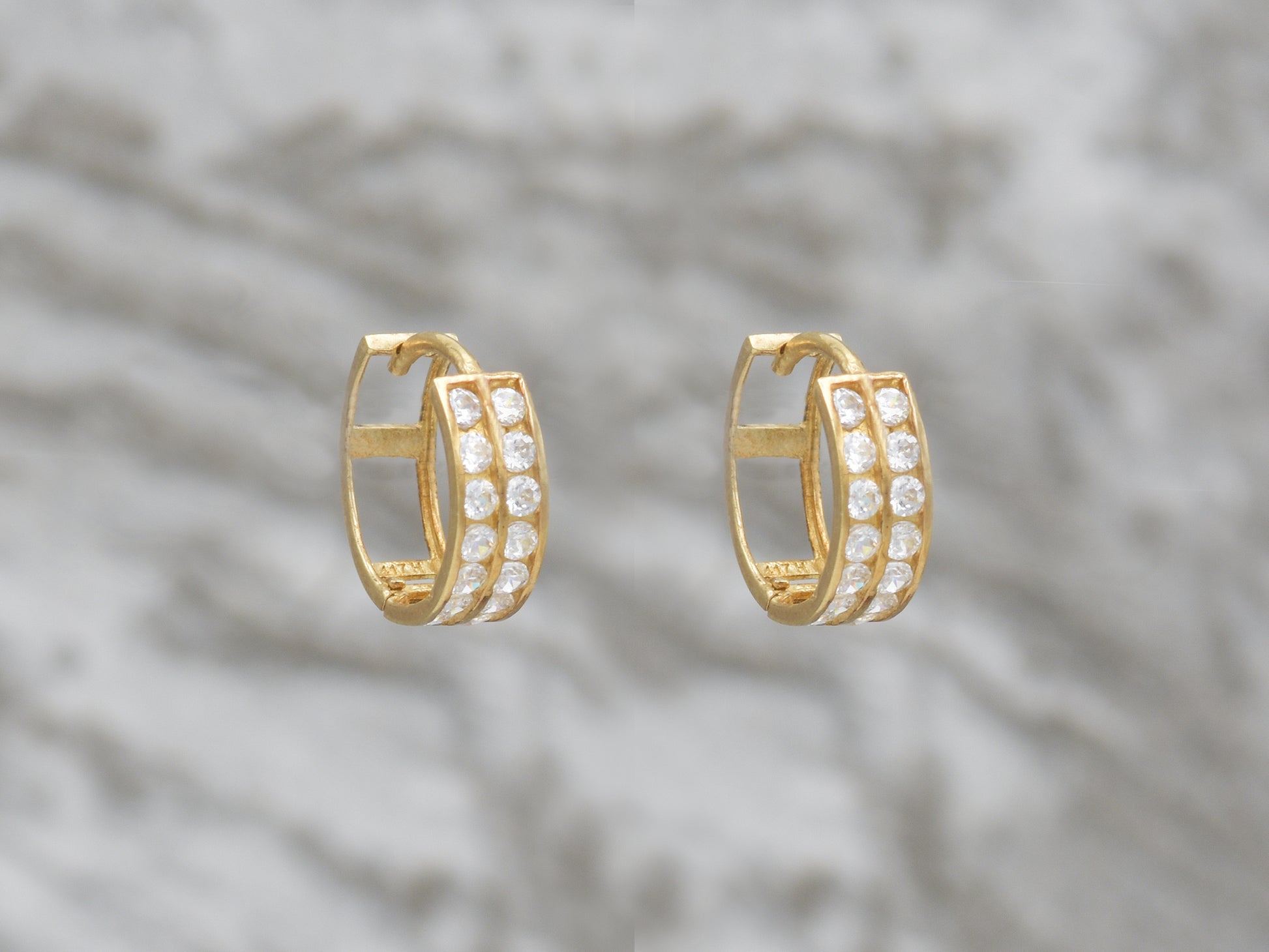 14k solid yellow gold two line simulated diamond earring, 14k Solid Gold Small Huggie Hoop 14K Solid Gold Hoop Earrings sold as PAIR