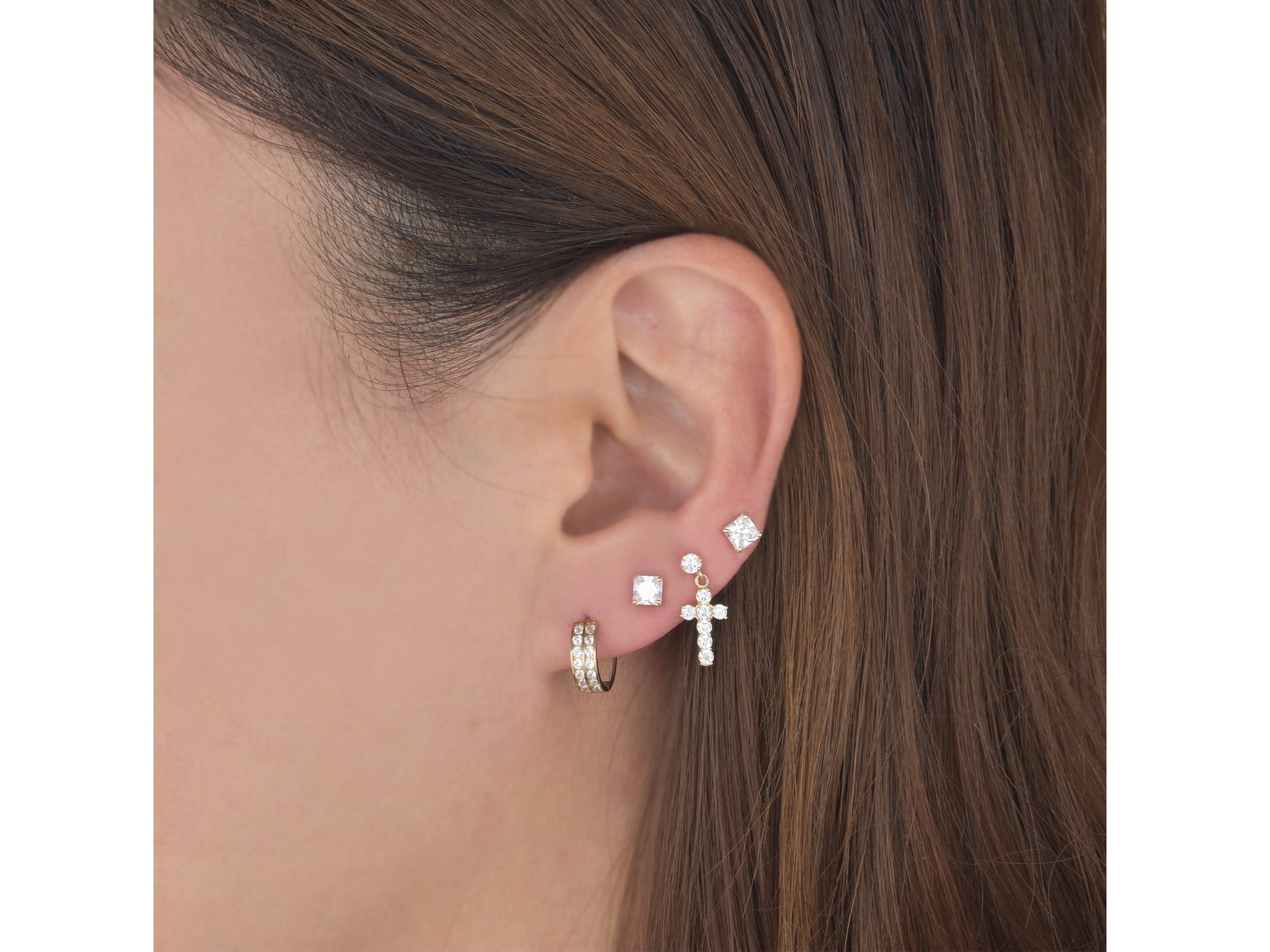 Simple, edge and brilliant Huggie mini hoop earring is double lined channeled setting will give a crisp and clean look that we all been looking for, dress it up for special event or just dress it down with T- shirt and a jean, will work both ways.