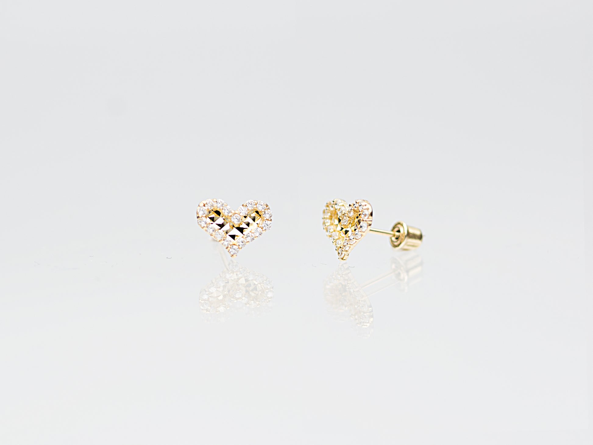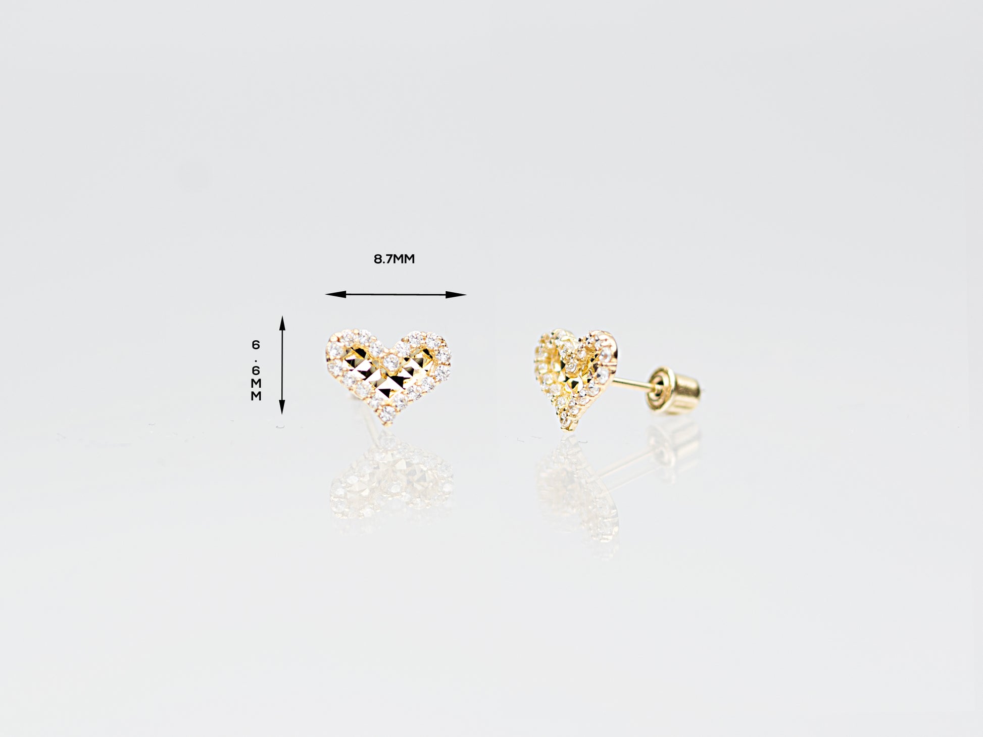 14K Solid gold Heart shape studs earrings with Top Quality Sparkling Cubic Zirconia Stones.