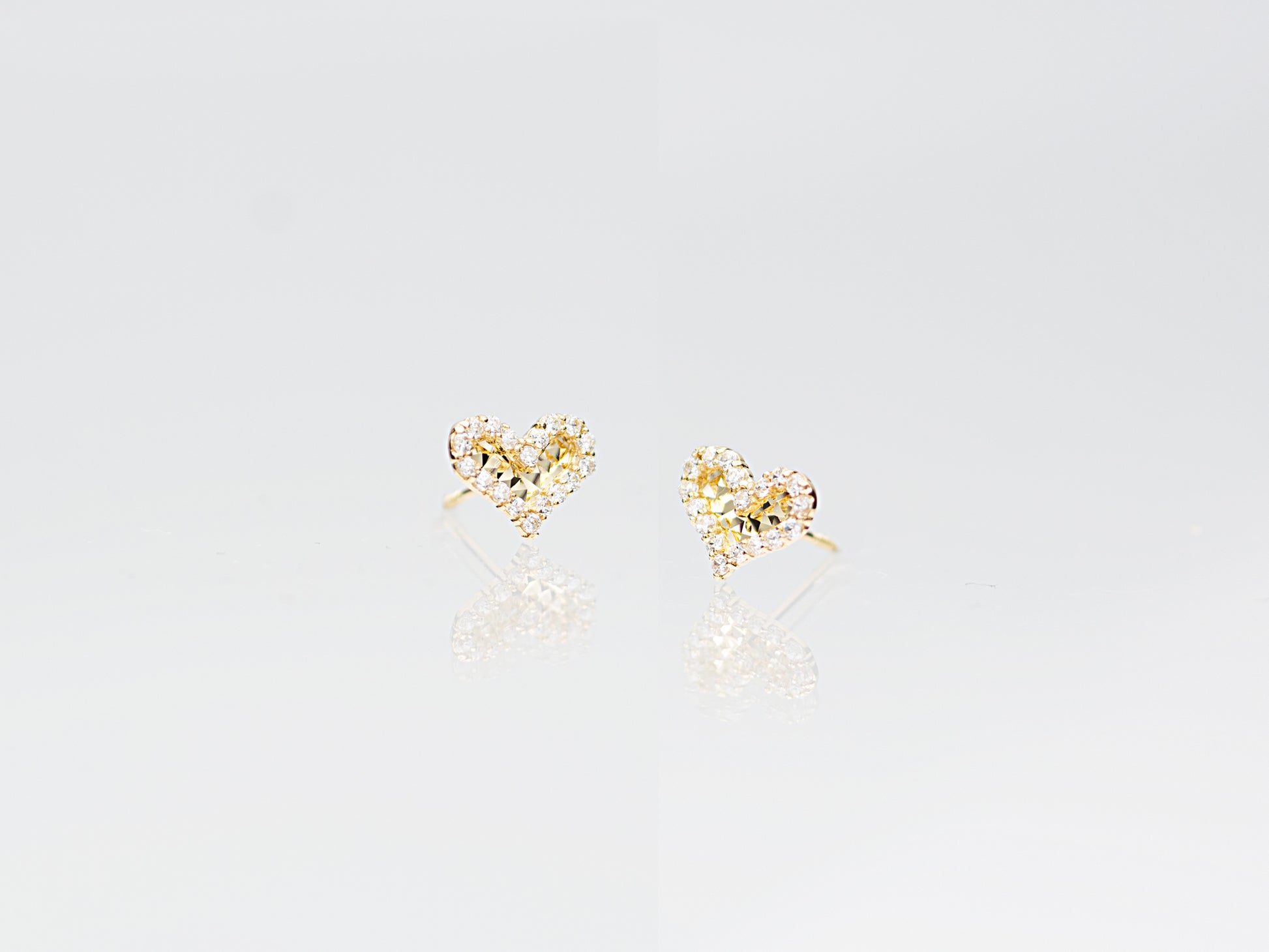 14K Solid Yellow, White Gold Heart shape Stud Earring