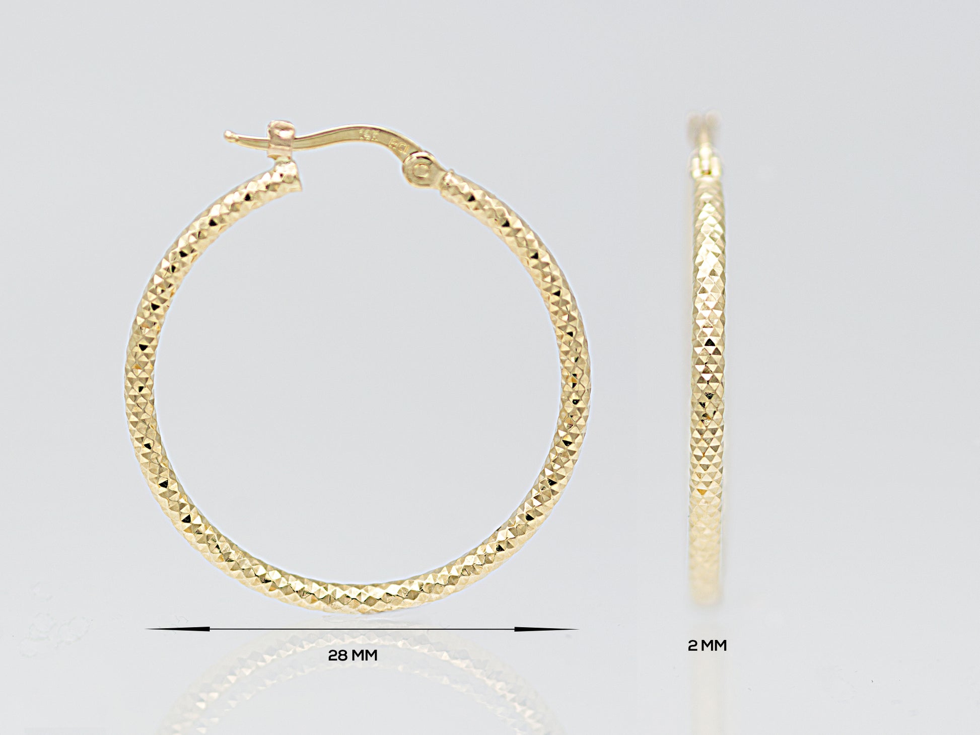 14k Yellow Gold 2mm Wide 28mm Diamond-cut Hoop Earrings, Big size statement huggie, Special gift for her, high polished handmade earing