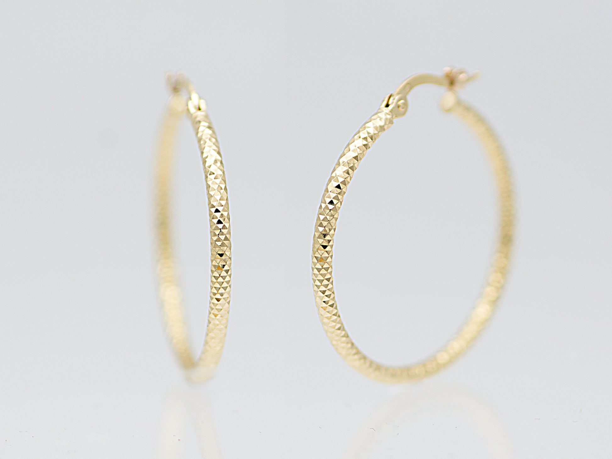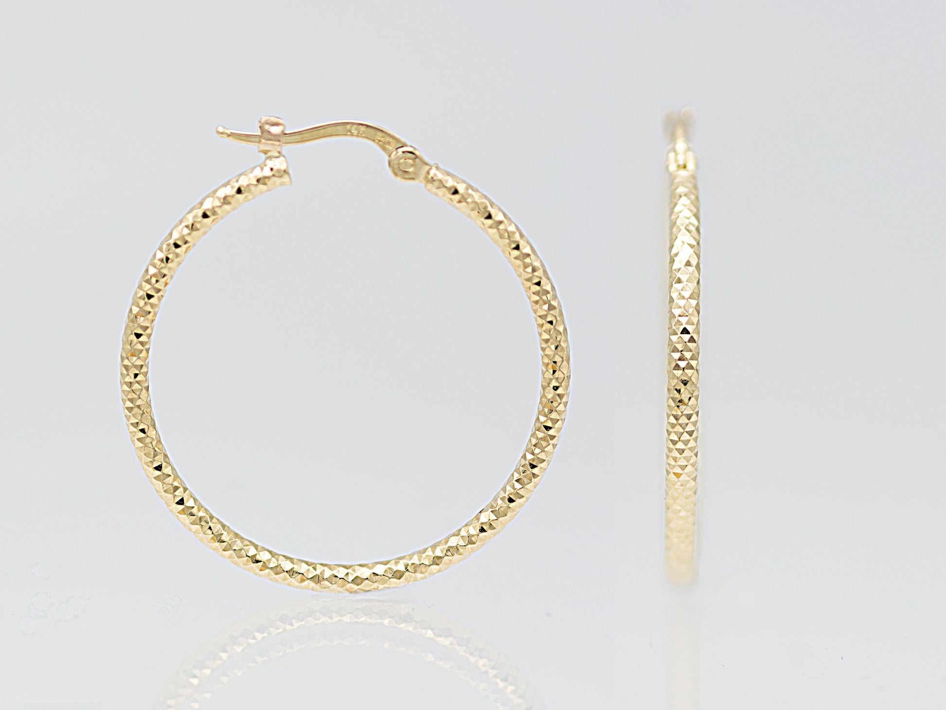 14k Yellow Gold Diamond-cut Hoop Earrings