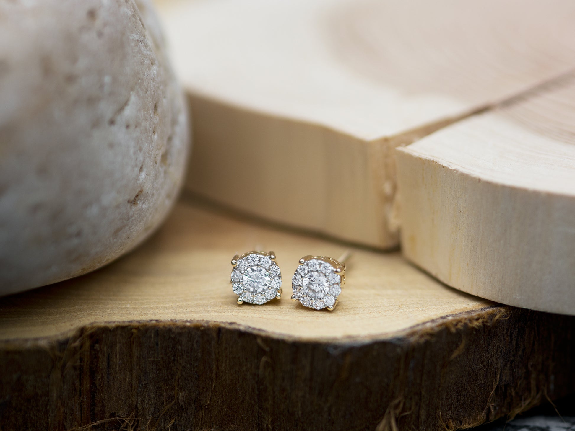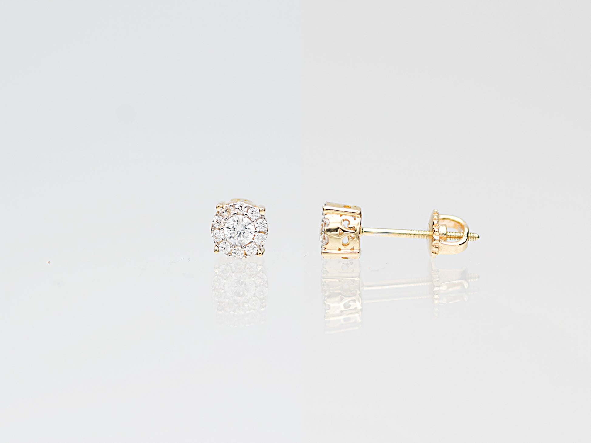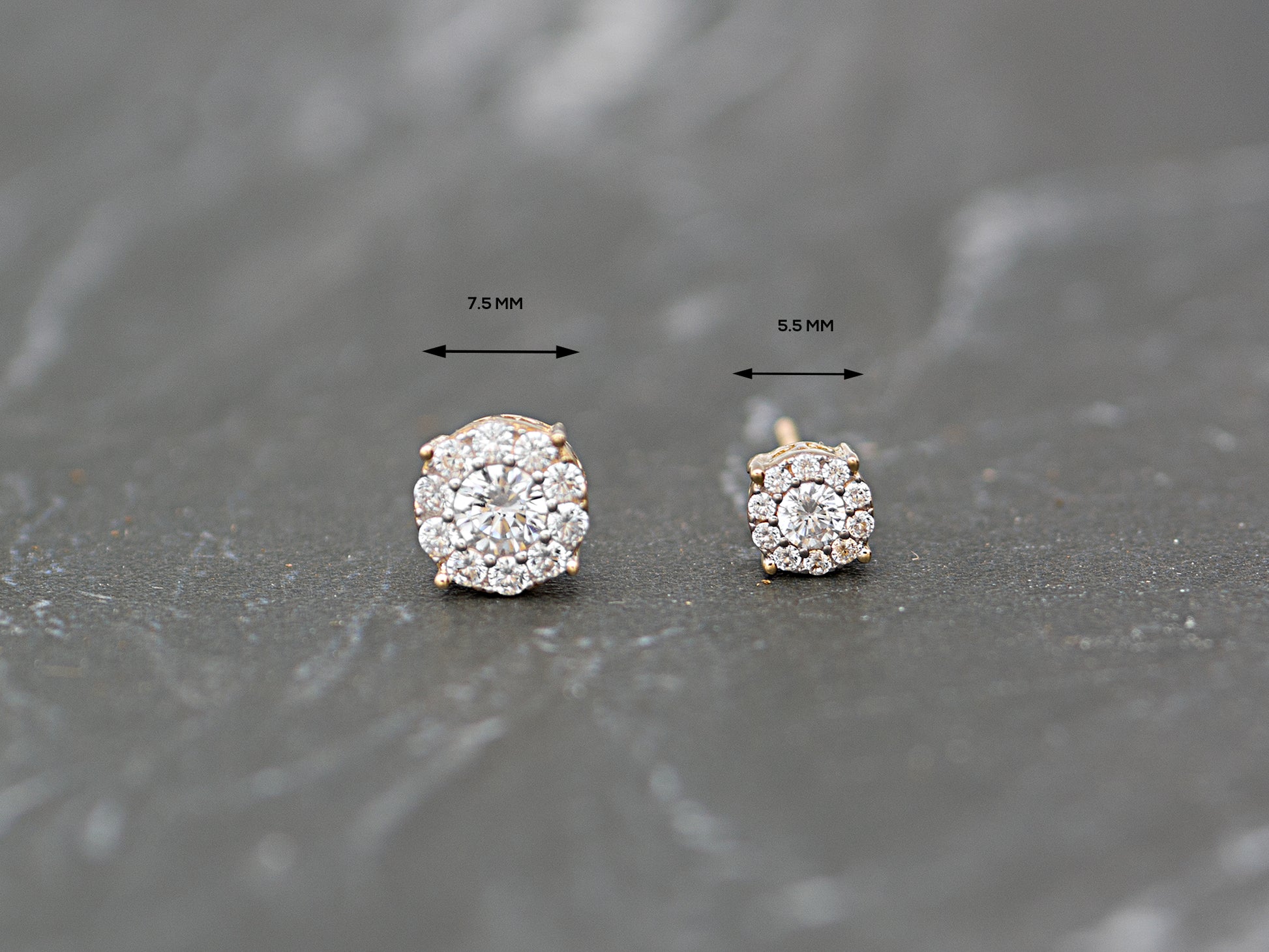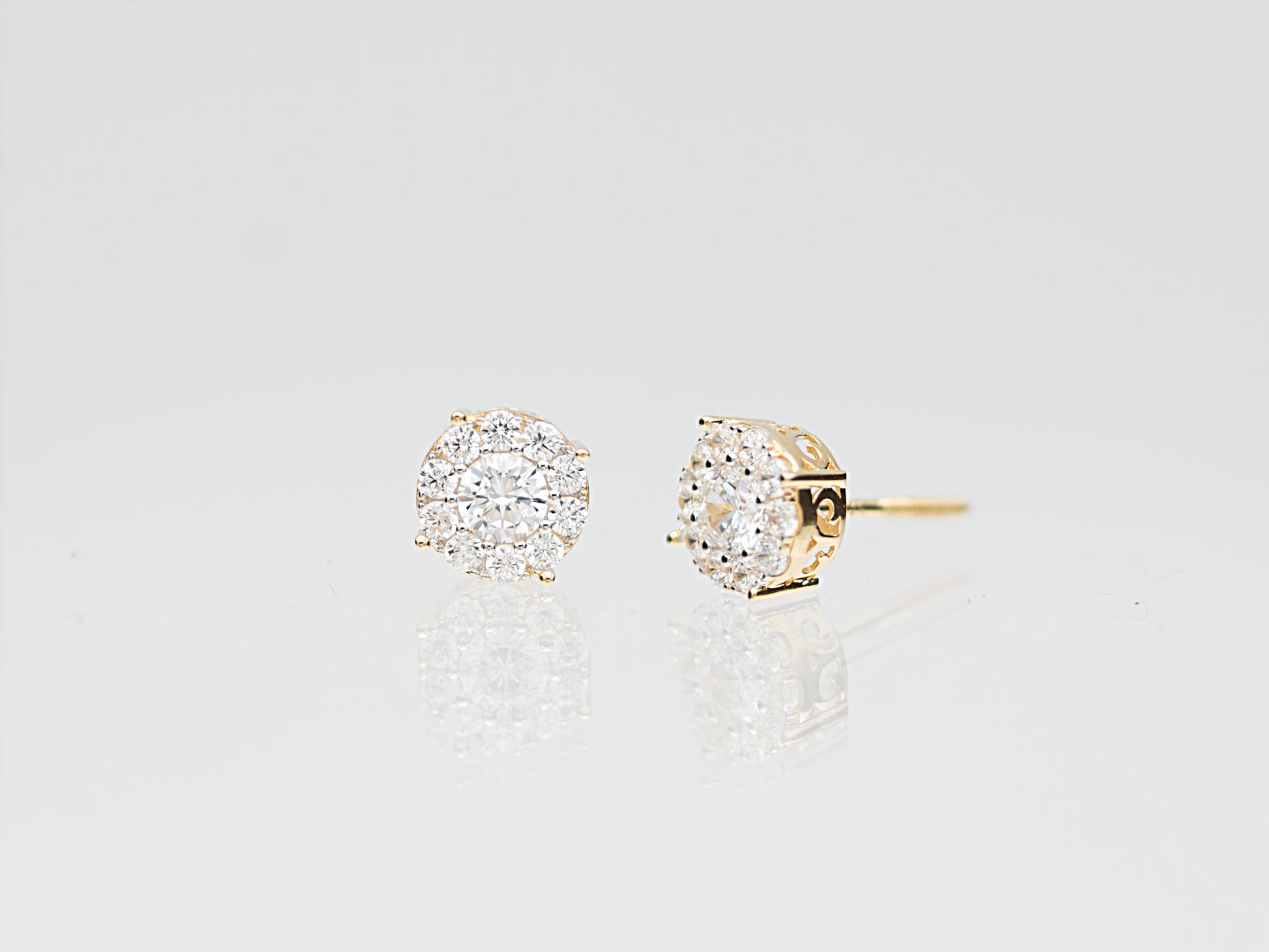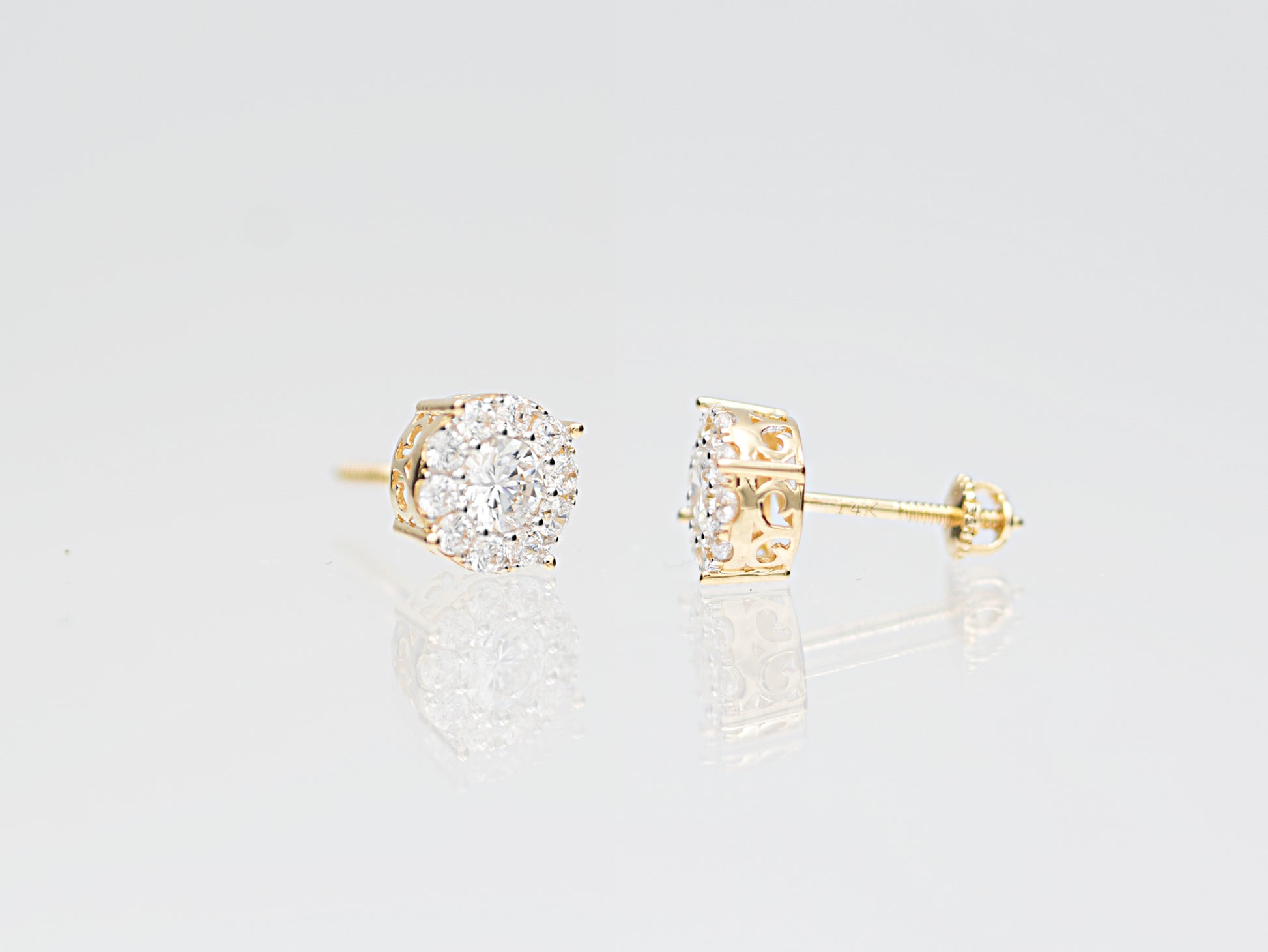 14K Yellow Solid Gold Floral Simulated Diamond Setting Studs Earrings, CZ Cluster Statement Earrings, Special gift for her and him.