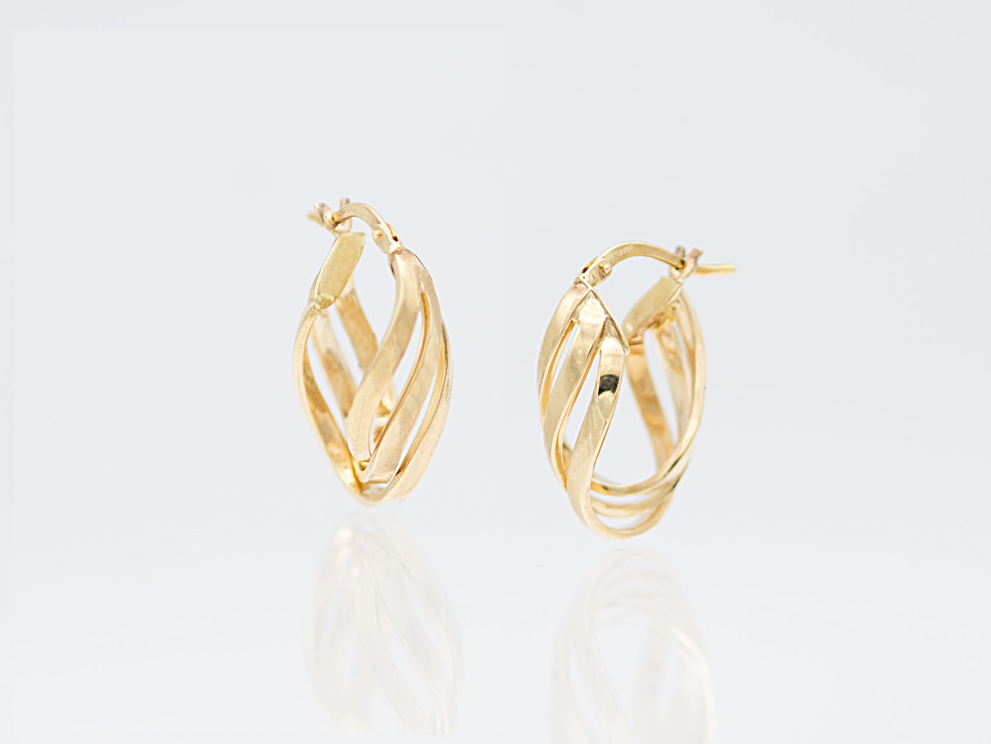 14K Yellow Solid real Gold 3 Line Hoop Earrings
