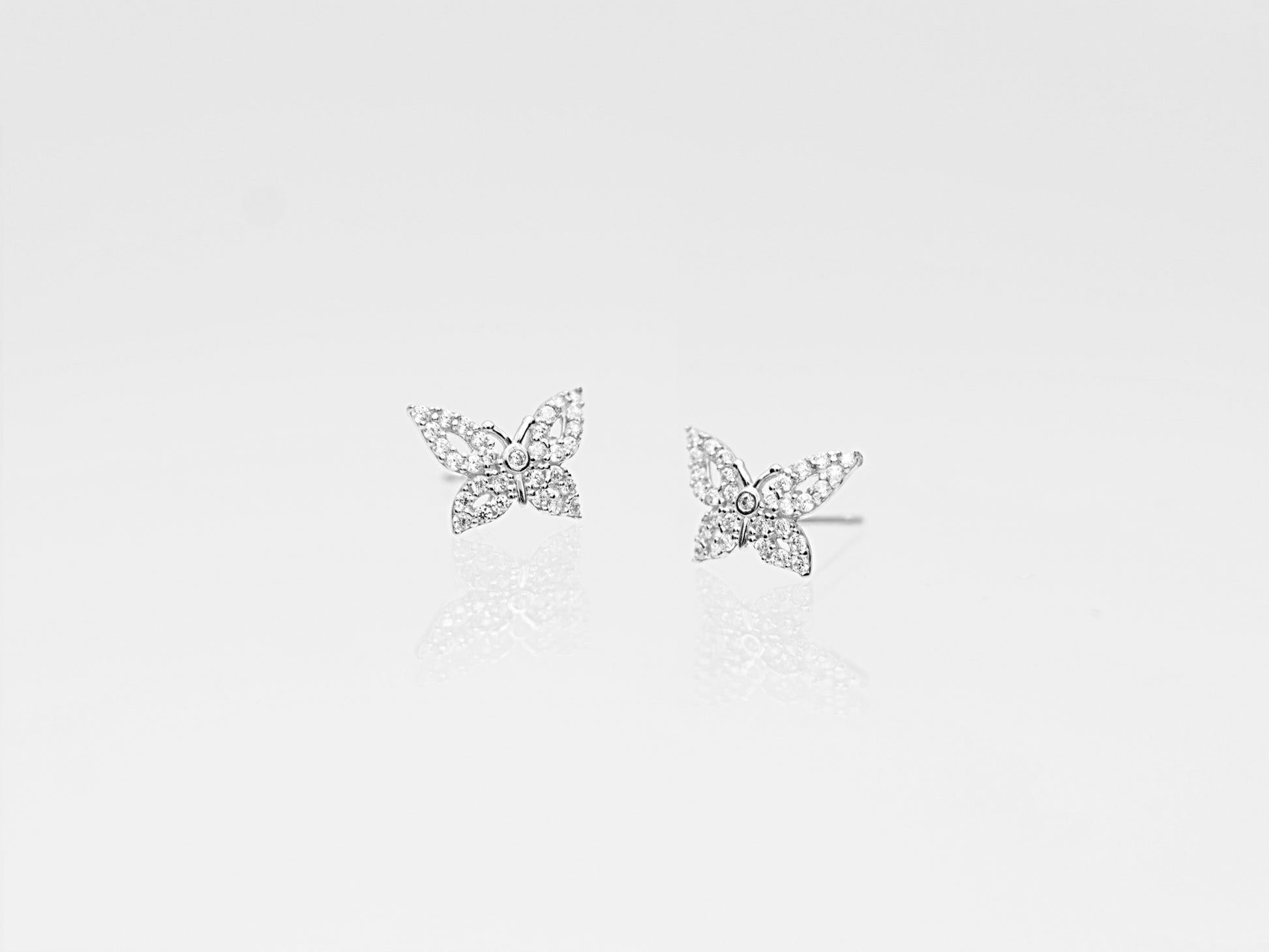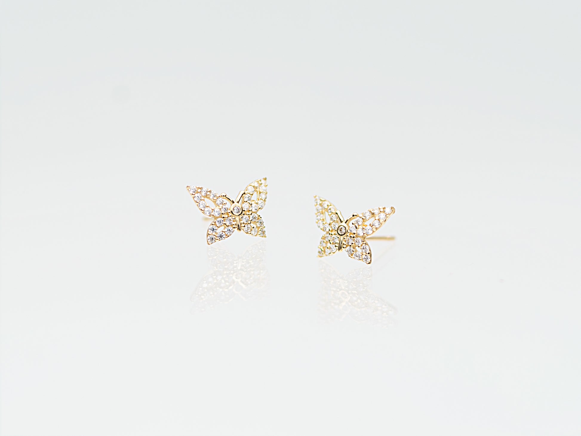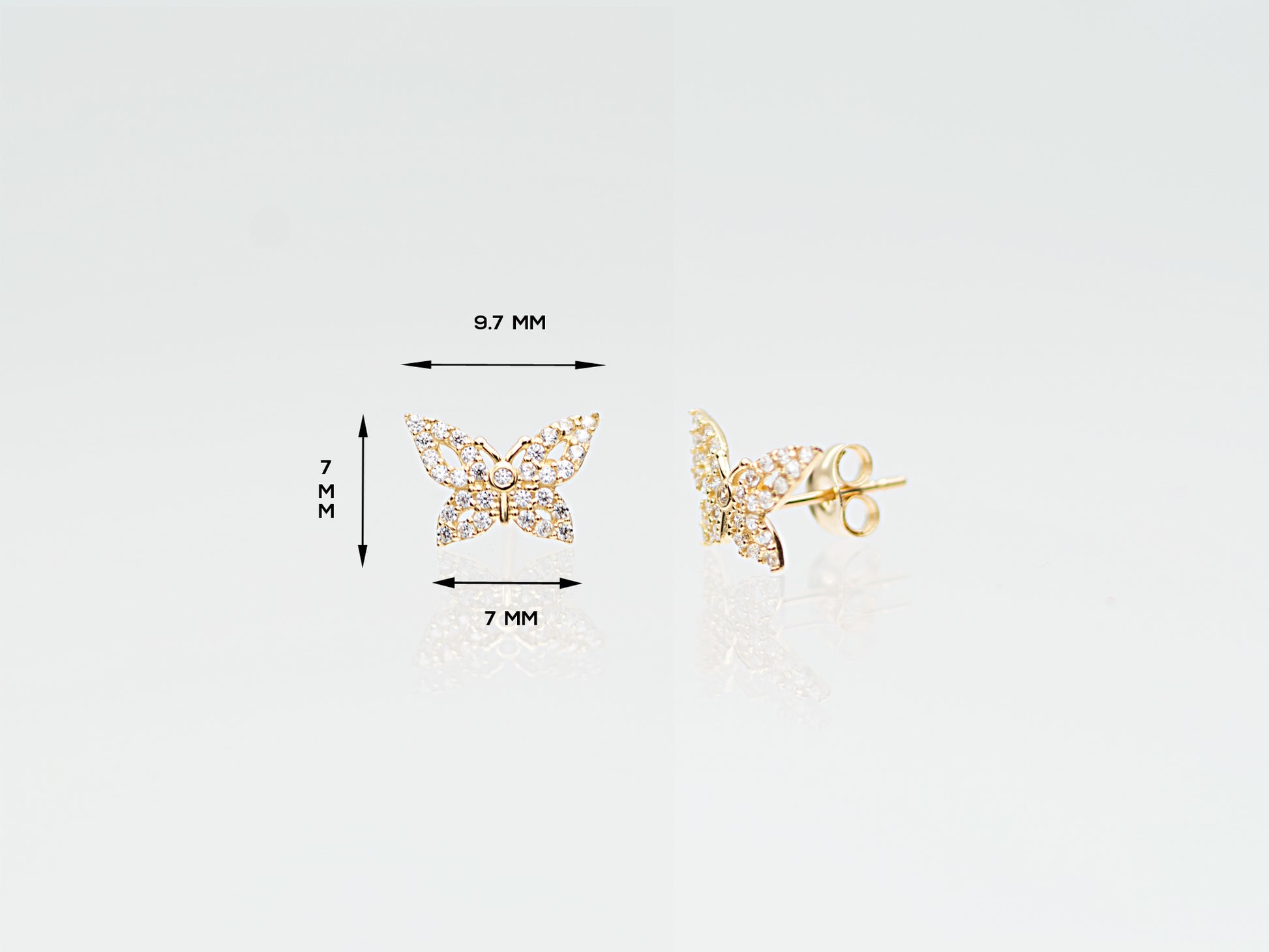 Butterfly Paved simulated Diamond 14K Real Solid Gold stud earring