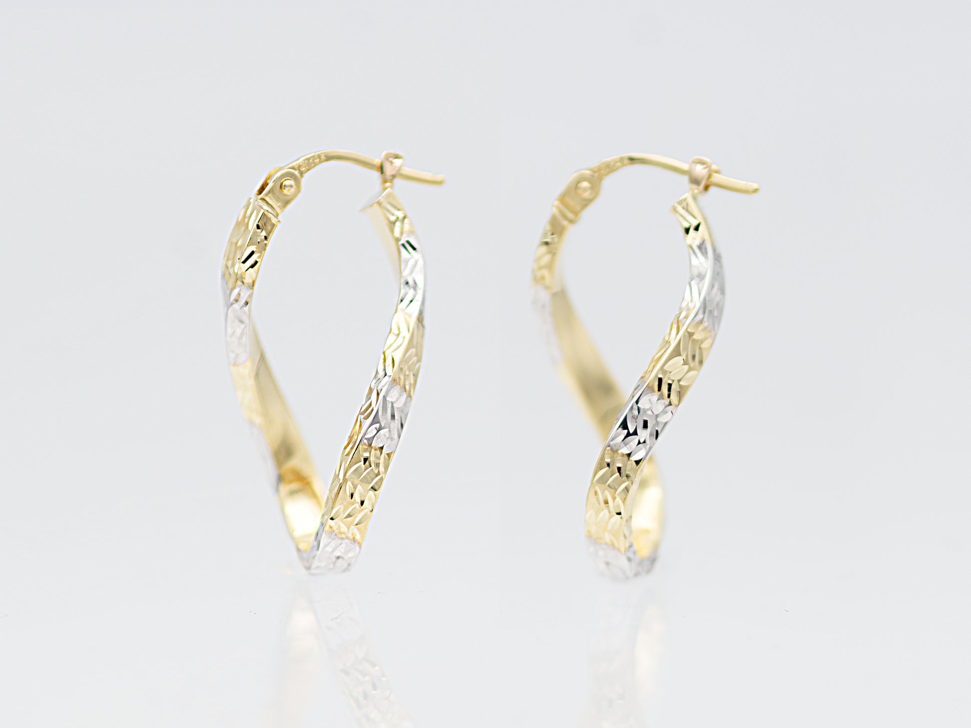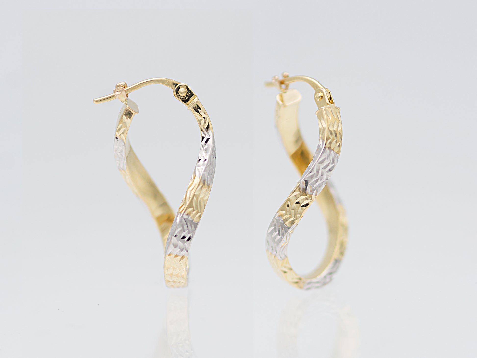 Diamond Cut Twisted Figure 8 Hoop Earrings.
