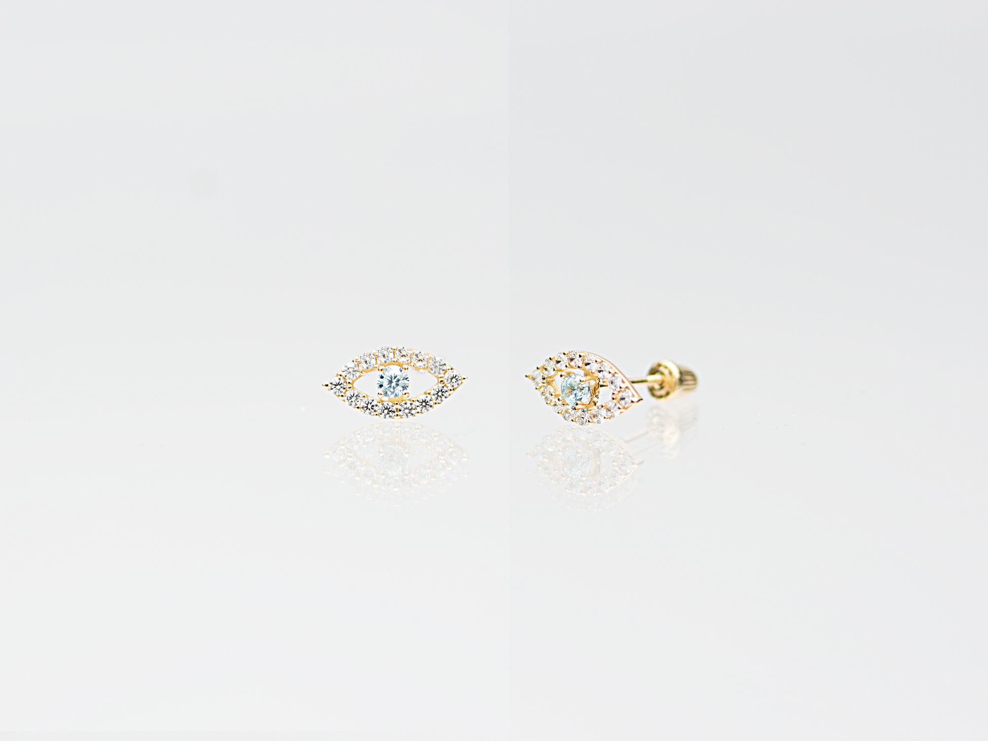 Evil Eye Stud Earrings 14K Solid Yellow Gold studs