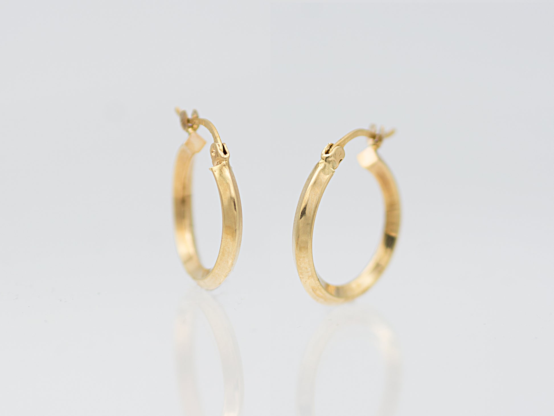 Classic knife edge hoop earrings with a modern twist. Handmade, these medium-size 14k yellow gold hoops are for an elegant touch to any outfit.