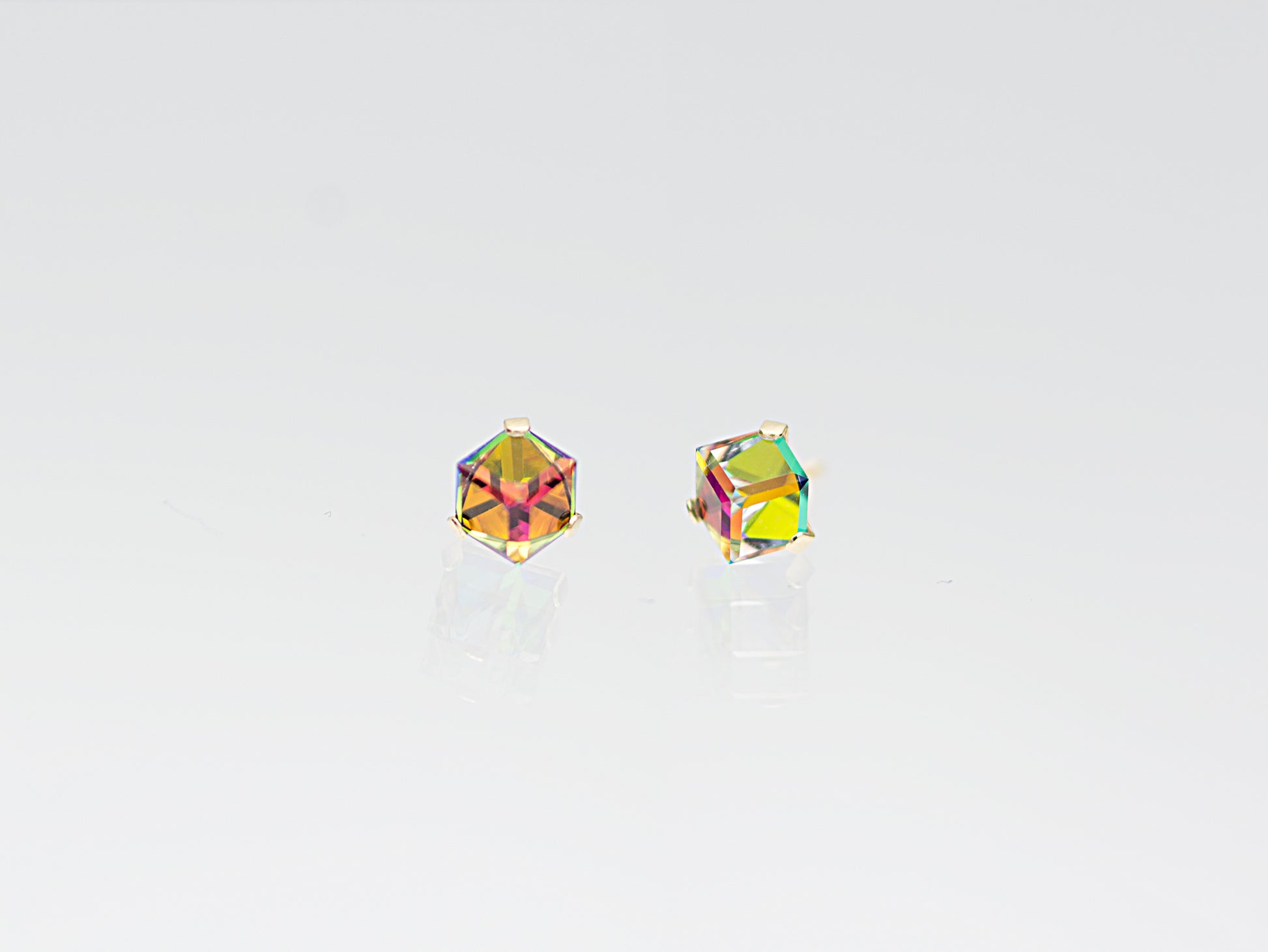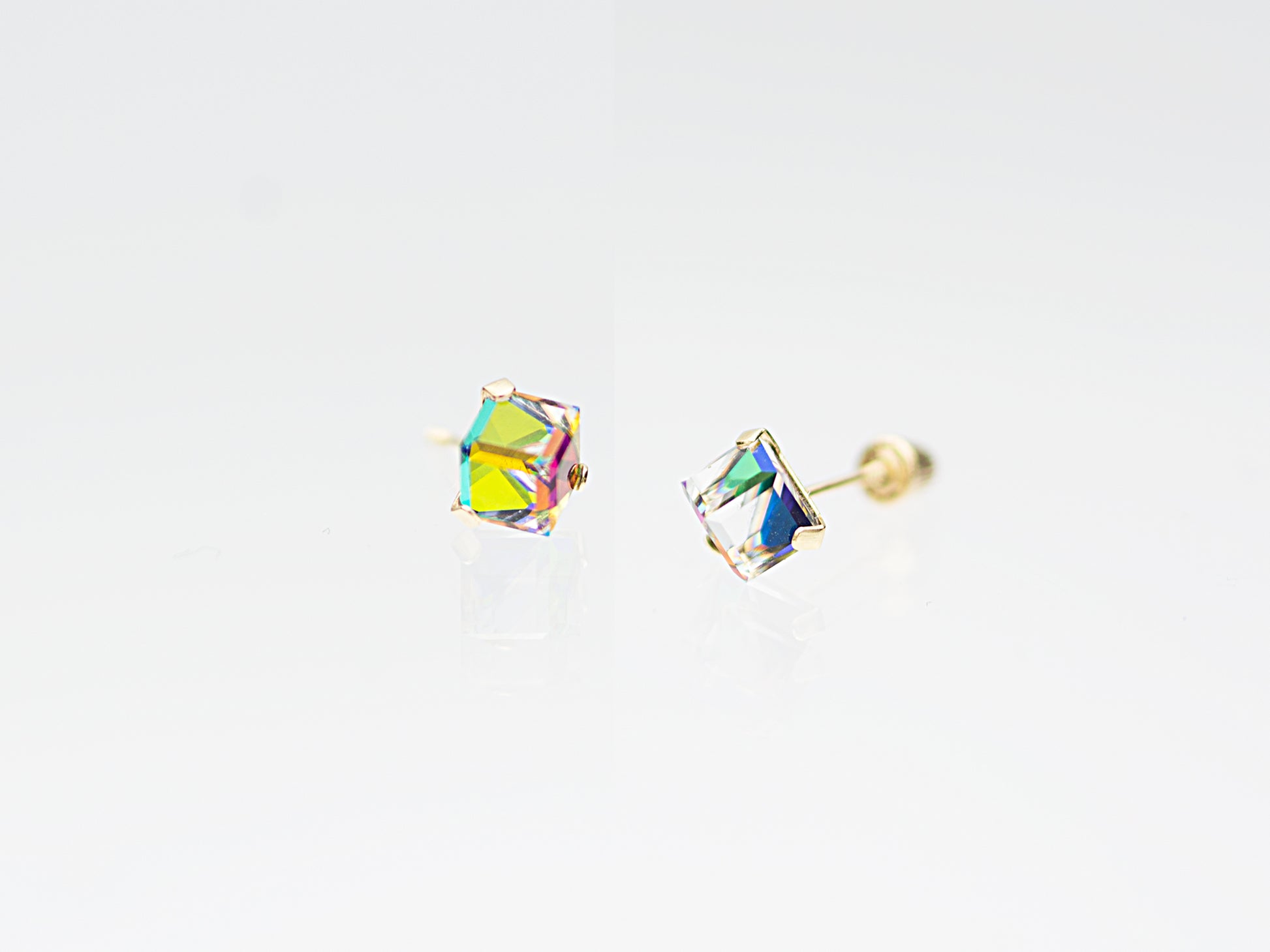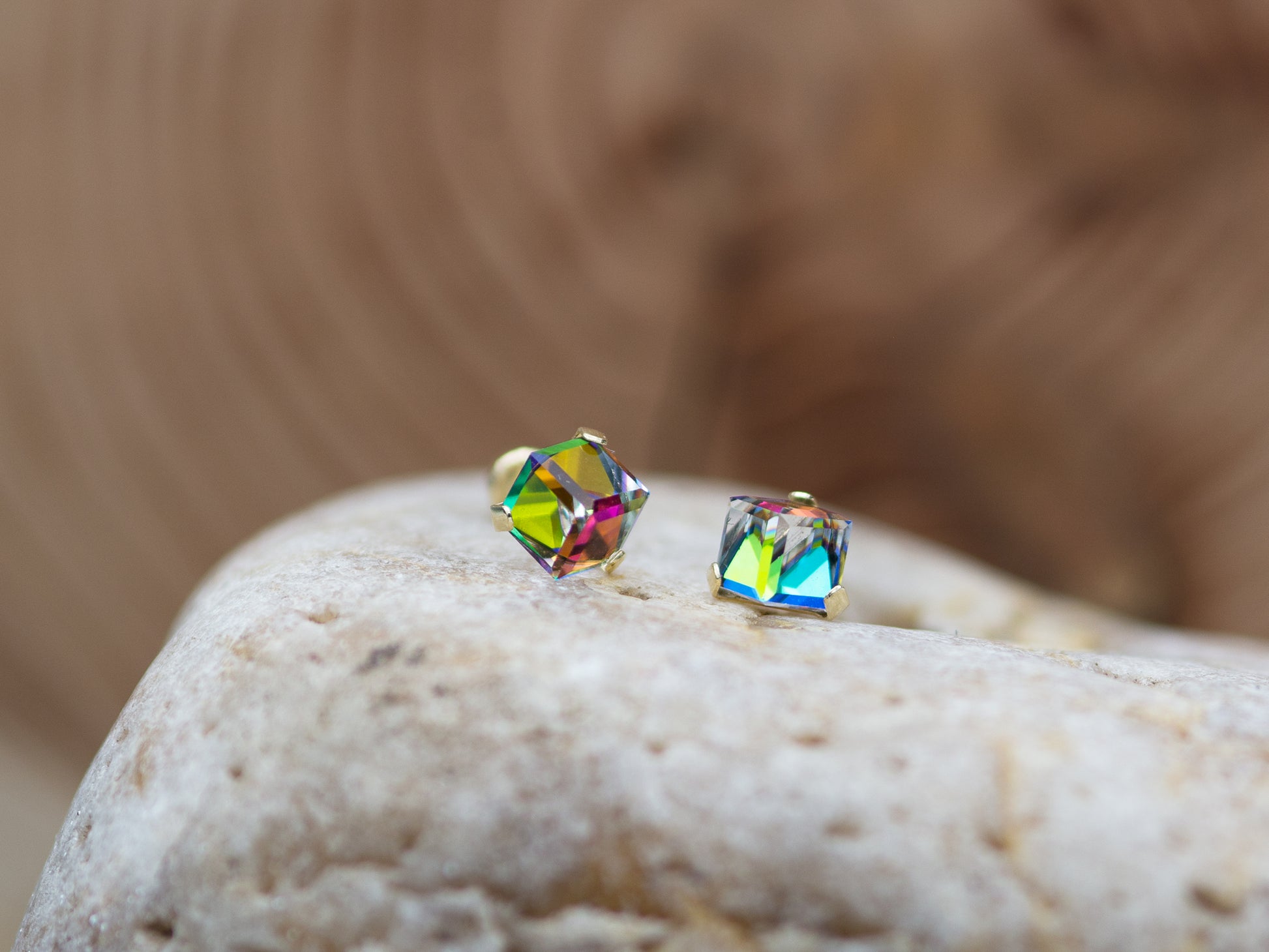 It's a very special and unique piece that changes color when light passes/ shape as a cube that is dazzling.